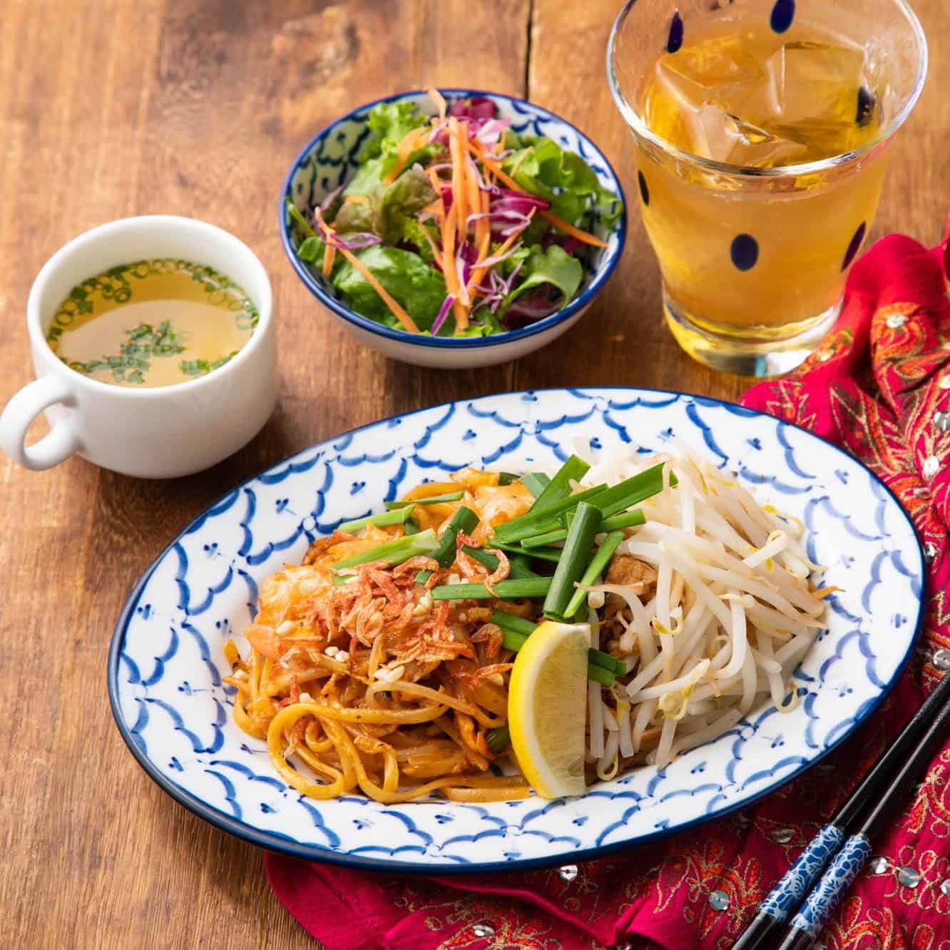 แม้จะเป็นร้านผัดไทยสัญชาติญี่ปุ่น แต่บอกเลยว่าเครื่องเคียงทั้งผักทั้งกุ้งก็จัดเต็มไม่เเพ้ของไทย ซึ่งผัดไทยของที่นี่มี 2 แบบ คือผัดไทยแบบธรรมดา เส้นนุ่มหนุบหนับ รสกลมกล่อม และผัดไทยรสเผ็ด (ขั้นสุด) ที่ผัดด้วยน้ำมันพริกและพริกขี้หนู นอกจากนี้ยังมี “ข้าวมันไก่” เมนูขวัญใจทั้งชาวไทยชาวญี่ปุ่น ซึ่งทุกเมนูจะเสิร์ฟพร้อมซุปขิงจากจังหวัดโคจิ สลัด และเครื่องเคียงอื่นๆ