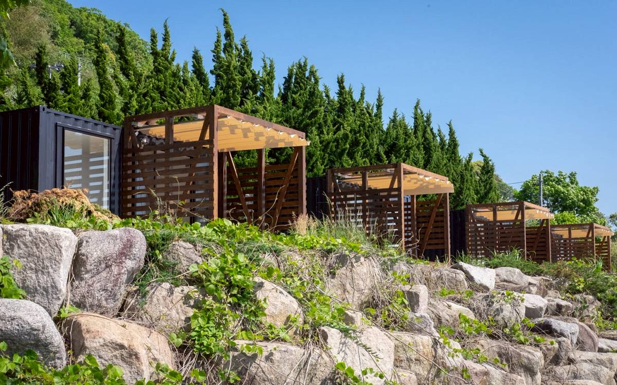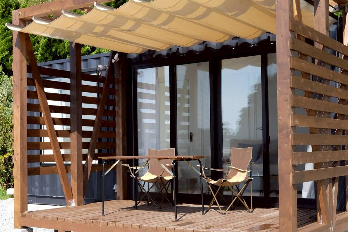 ที่พักมาในรูปแบบตู้คอนเทนเนอร์ ในแต่ละตู้จะมีสิ่งอำนวยความสะดวก อย่างเช่น ตู้เย็น เครื่องปรับอากาศ และเตียงเดี่ยว 2 เตียง จัดเตรียมไว้ให้ หน้าต่างของห้องพักมีขนาดใหญ่ จะนั่งบนโซฟา พักผ่อนชิลล์ๆ พลางชมวิวทะเลสวยๆ ของเกาะซาโดะจากในห้องพักก็ดีไม่น้อยเลยล่ะ