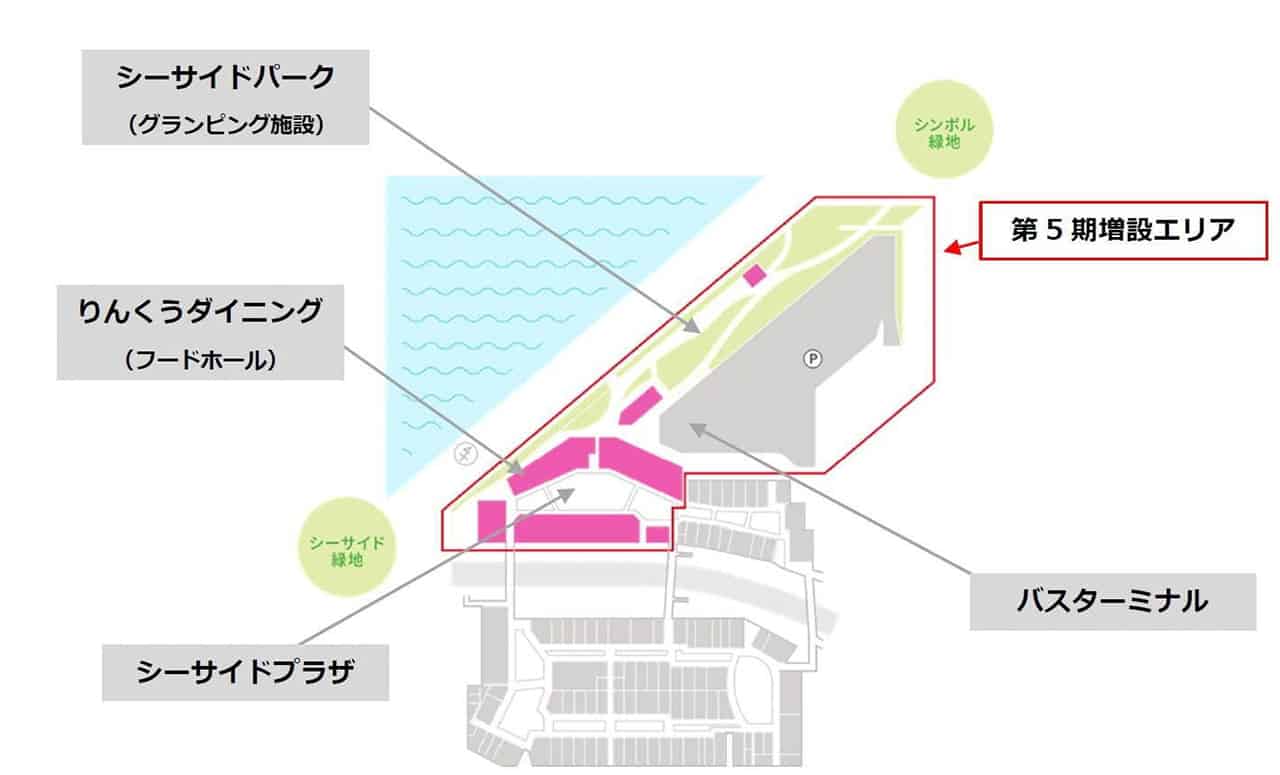 อีกทั้งยังได้มีการเพิ่ม Shop Area โดยขนทัพช็อปแบรนด์เนมและช็อปกีฬาเพิ่มเข้ามาให้เราได้ใช้จ่ายกันแบบหนำใจ เช่น Alexander Wang, Prada, Burberry และ New Balance เป็นต้น รวมไปถึงการเปิด Rinku Dining ฟู้ดฮอลล์แห่งใหม่ชั้น 3 ที่สามารถมองเห็นทิวทัศน์ของอ่าวโอซาก้าได้แบบเต็มอิ่ม โดยรวมๆ แล้วมีร้านค้าใหม่จำนวน 50 ร้านค้าด้วยกันในพื้นที่ประมาณ 13,200 ตารางเมตร