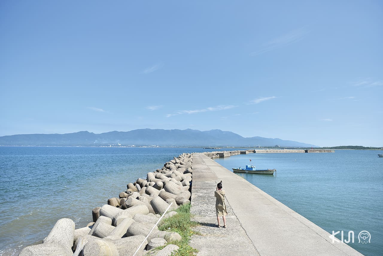 สะพานคอนกรีตทอดยาวไปในท้องทะเลที่เราพบเจอโดยบังเอิญขณะกำลังหาที่กลับรถ แล้วก็พบว่าเป็นอ่าวที่มีเรือประมงขนาดเล็กจอดอยู่เต็มไปหมด เลยแวะเดินเล่นสักหน่อย พูดเลยว่าบรรยากาศดีมาก ใครผ่านแถวนี้แวะมาเดินเล่นกันได้