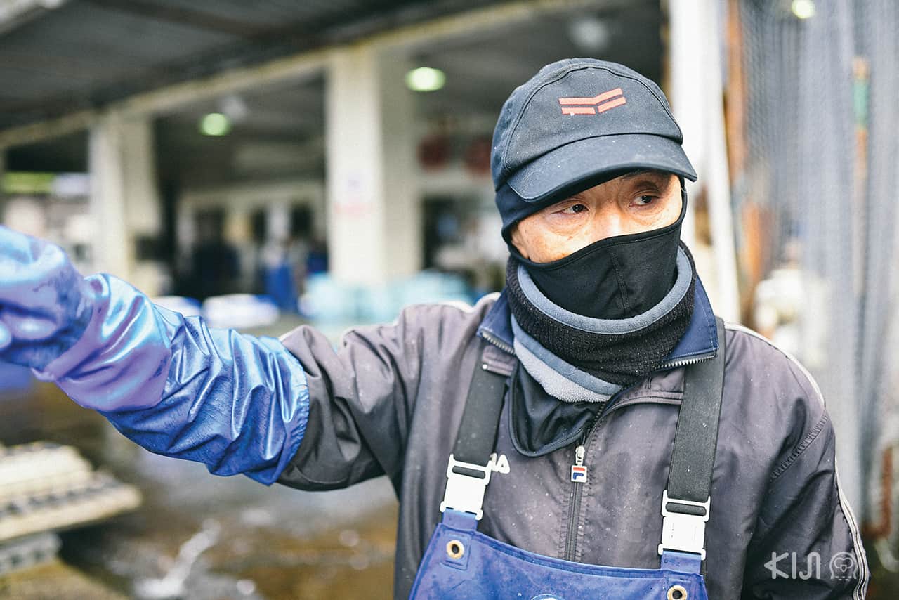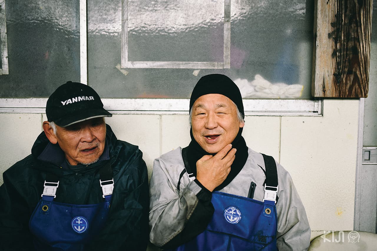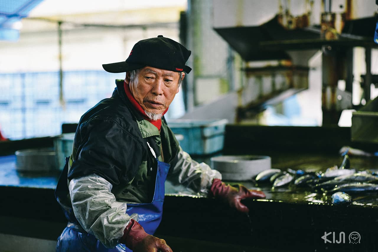 คุณฮิเดกิ คุระ (Hideki Kura) อายุ 65 ปี พนักงานตำแหน่งคัดแยกปลา เขาทำอาชีพชาวประมงมาตั้งแต่อายุ 20 ปี ประสบการณ์ 45 ปีที่ผ่านมา ทำให้เขาเห็นความเปลี่ยนแปลงมากมายของหมู่บ้านริมน้ำอันแสนโรแมนติกแห่งนี้