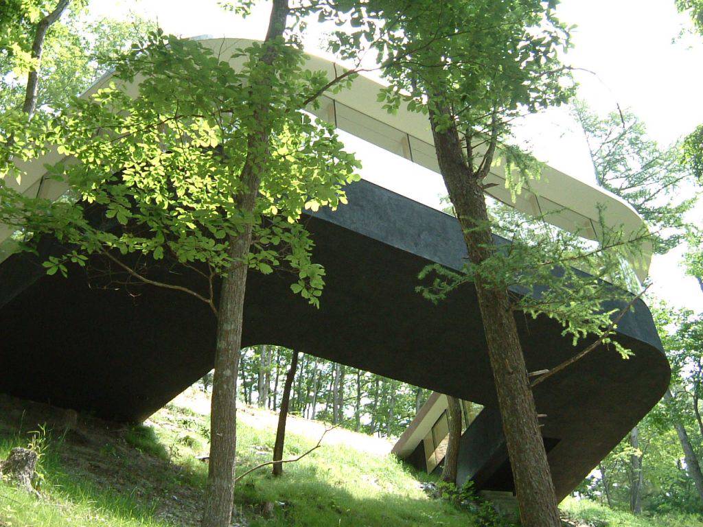 ด้านการออกแบบที่มีเอกลักษณ์โดดเด่นด้วยโครงสร้างชั้นบนที่ยื่นออกมาจากหน้าผาเพื่อเพิ่มพื้นที่ในการใช้งาน ทั้งรูปทรงและการจัดวางล้วนดีไซน์มาได้สะดุดตา ผลงานออกแบบโดยสมาคมสถาปัตยกรรมแห่งประเทศญี่ปุ่น (TNA) ซึ่งได้รับรางวัล Architectural Institute of Japan Award