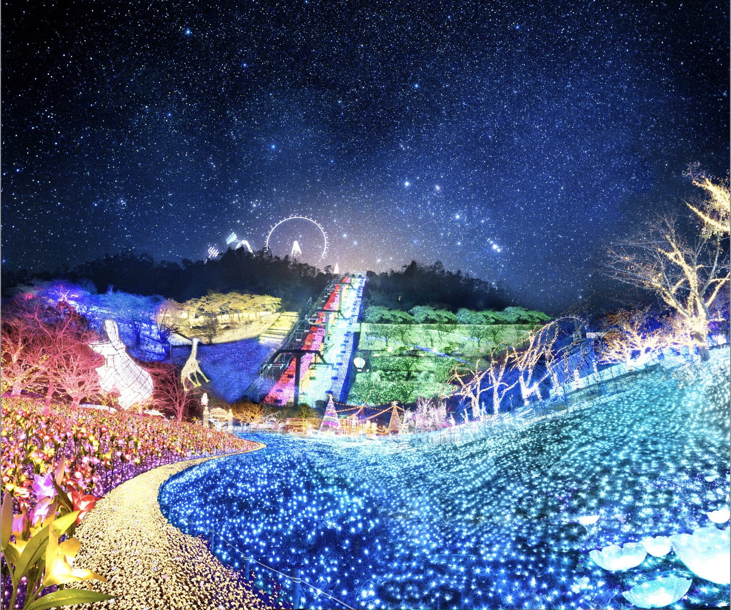 ทั่วพื้นที่จัดงานจะถูกประดับประดาด้วยแสงไฟหลากสีกว่า 6 ล้านดวงที่สว่างไสวในยามค่ำคืนเกิดเป็นเนินสูงต่ำมีมิติที่ส่องแสงเป็นสีสันต่างๆ ชวนให้รู้สึกเหมือนกับว่าได้หลุดเข้าไปในโลกแฟนตาซีเชื่อว่าบรรยากาศอันสวยงามเช่นนี้คงสร้างความประทับใจและรอยยิ้มให้แก่ทุกคนได้ไม่น้อยเลย