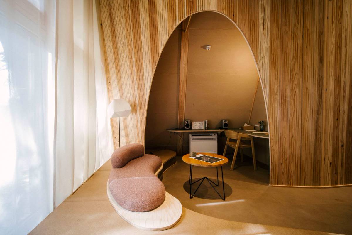 SANU CABIN เป็นบ้านพักที่ได้รับการดีไซน์ออกมาให้กลมกลืนไปกับธรรมชาติได้อย่างสวยงาม โดยมีแรงบันดาลใจมาจากโลกในธรรมชาติที่เต็มไปด้วยผืนป่าและสัตว์นานาชนิด ซึ่งได้นำธรรมชาติมาผสมผสานไปกับสถาปัตยกรรมแบบญี่ปุ่น อีกทั้งส่วนโค้งที่เป็นผนังไม้ภายในห้องนั้นสื่อถึงขนาดลำตัวของสัตว์ที่แตกต่างกันนั่นเอง