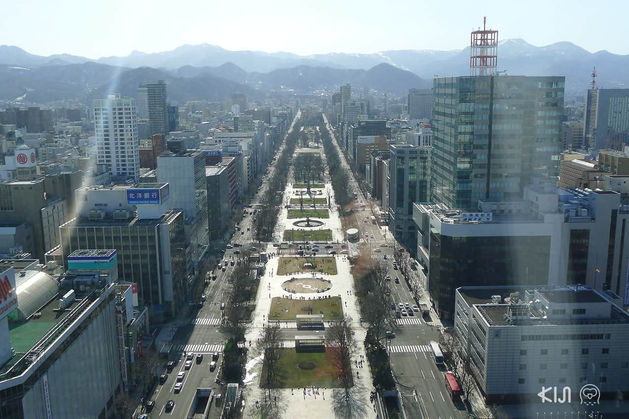 คุณจะเห็นวิว Odori Park อยู่สุดลูกหูลูกตา รวมถึงตึก อาคารที่อยู่รายล้อม ในวันที่ท้องฟ้าเปิดสามารถมองเห็นภูเขา Moiwa ที่อยู่ด้านข้างเมืองด้วยนะ