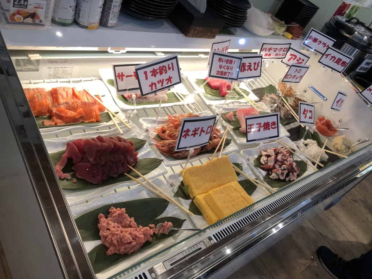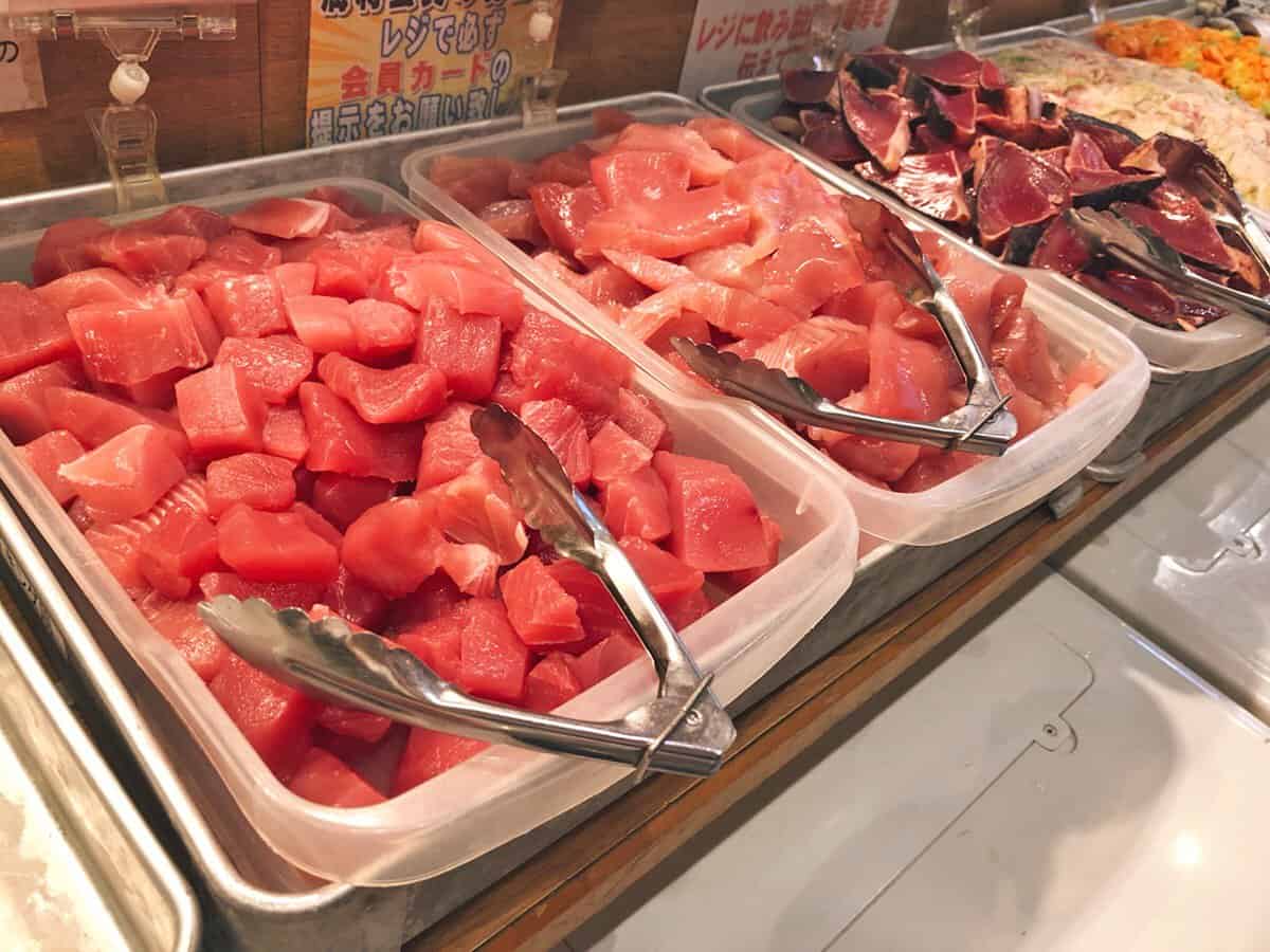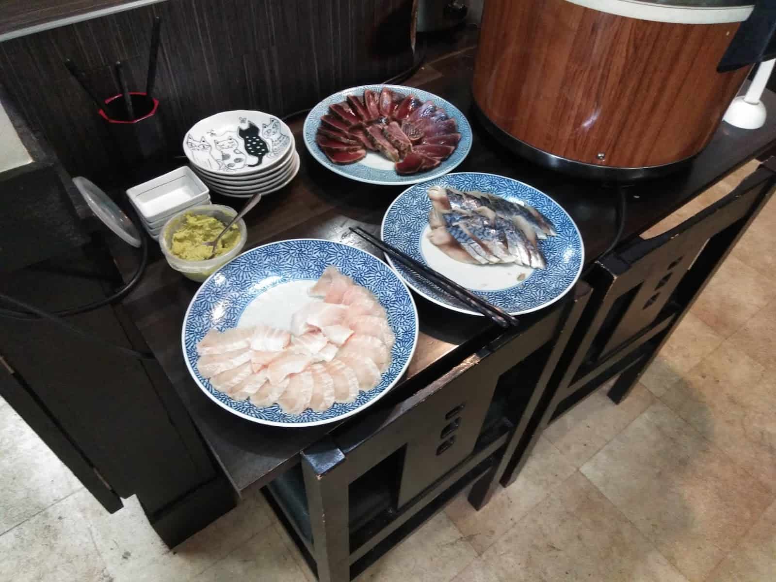 เมื่อเข้าในร้านแล้วจะสามารถเลือกคีบปลาดิบที่ต้องการได้ที่โต๊ะกลางร้าน โดยทางร้านจัดเรียงชิ้นปลาดิบที่แล่มาชิ้นโตๆ บนชามใหญ่ยักษ์ ซึ่งชนิดของปลาจะแตกต่างกันไปตามแต่ละช่วงเทศกาล ส่วนใหญ่ที่มีตลอดก็จะเป็น มากุโร่, แซลมอน, บุริ และคัตสึโอะ แล้วสำหรับใครที่กลัวว่ากินแต่ปลาดิบจะเอียนซะก่อน ที่ร้านก็มีข้าวสวย, มักกะโรนี, สลัด, ซุป ฯลฯ ให้ตักได้ไม่อั้น รวมในบุฟเฟ่ต์แล้วอีกด้วย