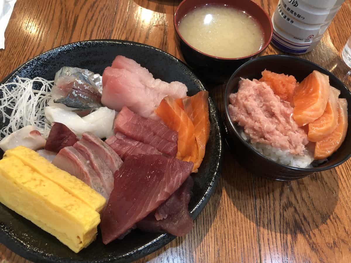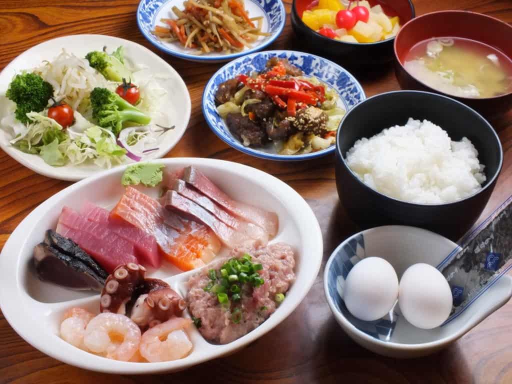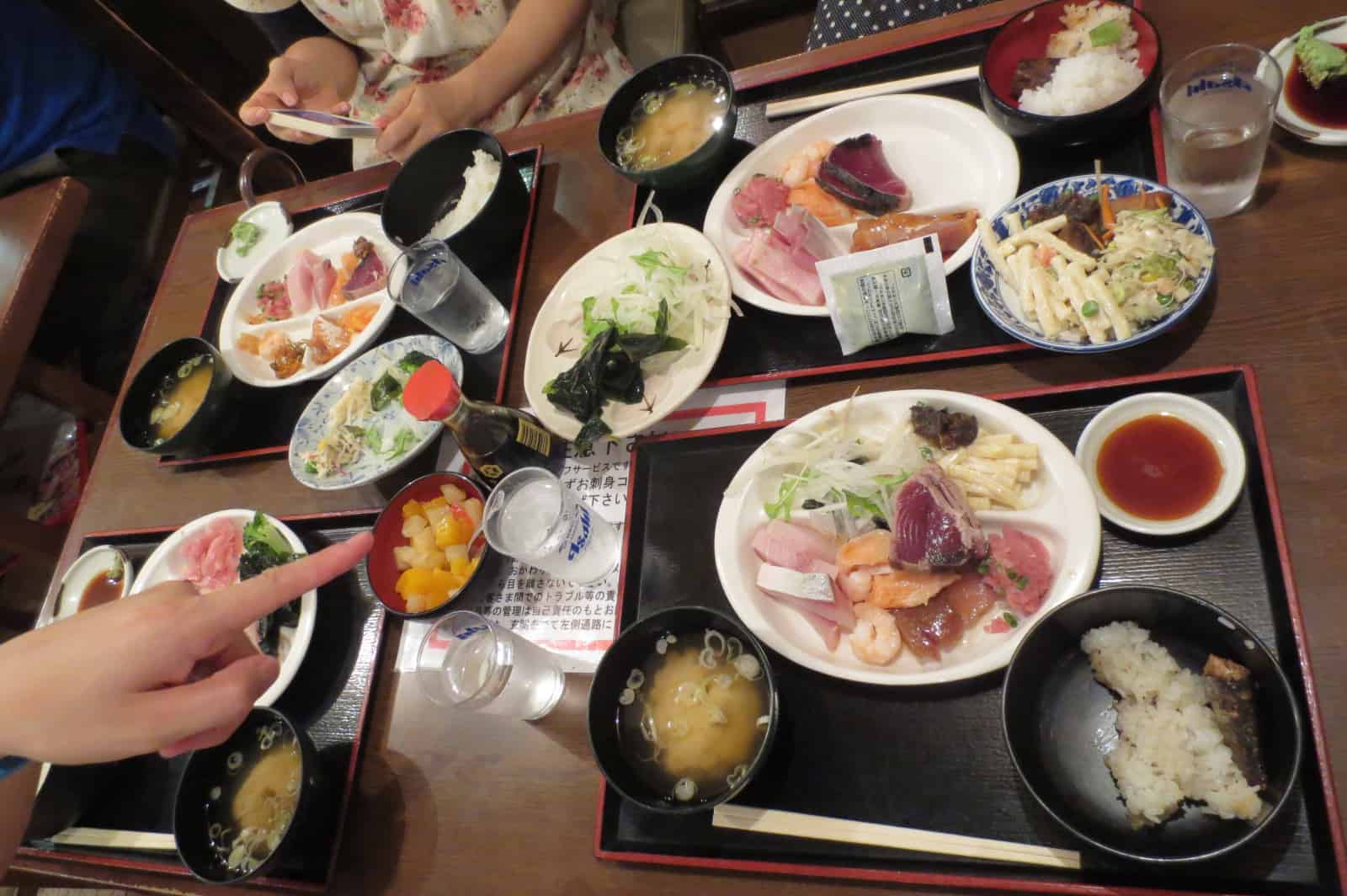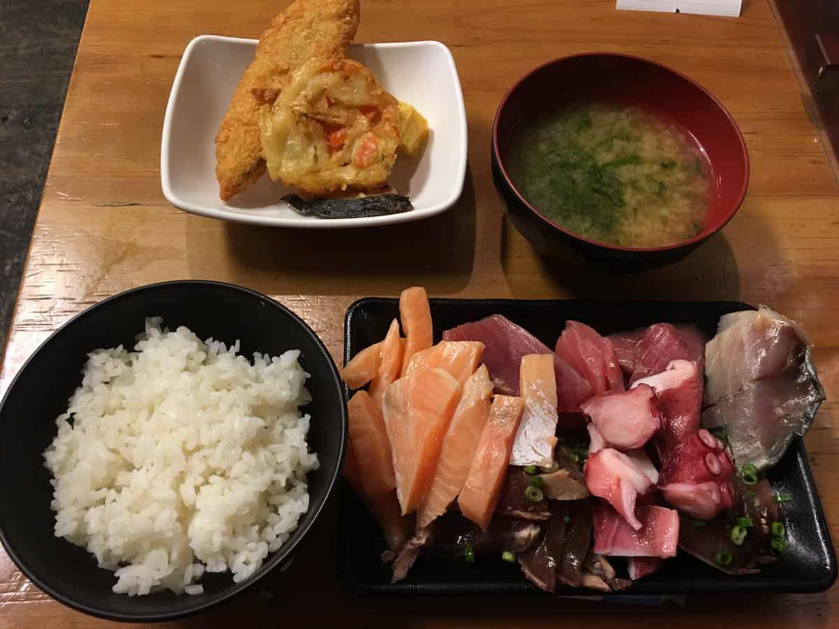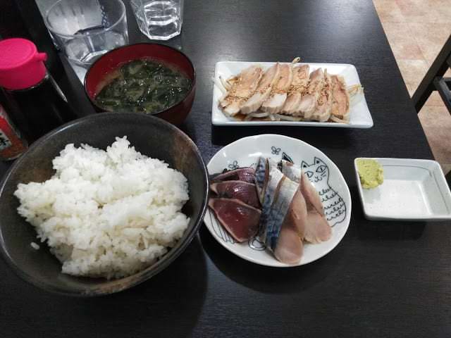 เมื่อสั่งอาหารกลางวันที่ราคาเพียง 880-990 เยน ไม่ว่าจะเป็น Chicken Katsu, Saba no Misoni ฯลฯ ก็สามารถลุกไปตักซาชิมิ, ข้าว, ซุป และผักดองได้ไม่อั้น ถือเป็นความอิ่มอร่อยในราคานักศึกษา