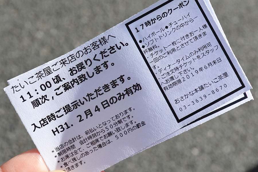 สำหรับใครที่ตัดสินใจแล้วว่าจะไปกินร้านนี้ให้ได้ เราขอแนะนำเลยว่าจะต้องไปต่อคิวหน้าร้านใกล้ๆ 10:00 น. เพราะทางร้านจะเริ่มแจกบัตรคิวตั้งแต่ 10:00 น. ทำให้คิวยาวอย่างรวดเร็ว (ทางร้านขอความร่วมมือไม่ให้ต่อคิวก่อน 10:00 น. เพราะจะขวางทางคนที่พักอาศัยแถวนั้น) สำหรับบัตรที่ได้รับจะระบุรอบเวลาที่สามารถเข้าร้านได้ ได้แก่ 11:00 น., 12:10 น. และ 12:50 น. ถ้ารับบัตรคิวไม่ทันก็คืออดกิน