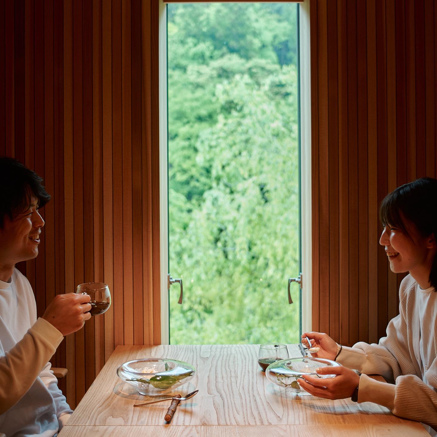 ร้านอาหารเปิดให้บริการในชื่อ “Tokiro” อาหารของที่นี่จะเป็นการผสมผสานระหว่างวัตถุดิบท้องถิ่นจากญี่ปุ่นและการปรุงรสสไตล์ฝรั่งเศสออกมาเป็นคอร์สอาหารให้เราได้ลิ้มรส (อาหารสั่งได้แค่คอร์สอาหารกลางวันเท่านั้นนะ) ในขณะที่เรากำลังเพลิดเพลินไปกับมื้ออาหาร เรายังสามารถมองเห็นทิวทัศน์ธรรมชาติรอบ ๆ ภูเขาโอคุทามะ ไม่ว่าจะเป็นป่าที่อุดมสมบูรณ์ ลำธารใสที่ไหลผ่านโรงแรม หรือแม้แต่นกน้อยที่กำลังร้องเพลงเพราะ ๆ ให้เราฟัง ได้รับประทานอาหารอร่อย ๆ แถมยังได้ใกล้ชิดกับธรรมชาติขนาดนี้ ต้องลองไปให้ได้ซักครั้ง