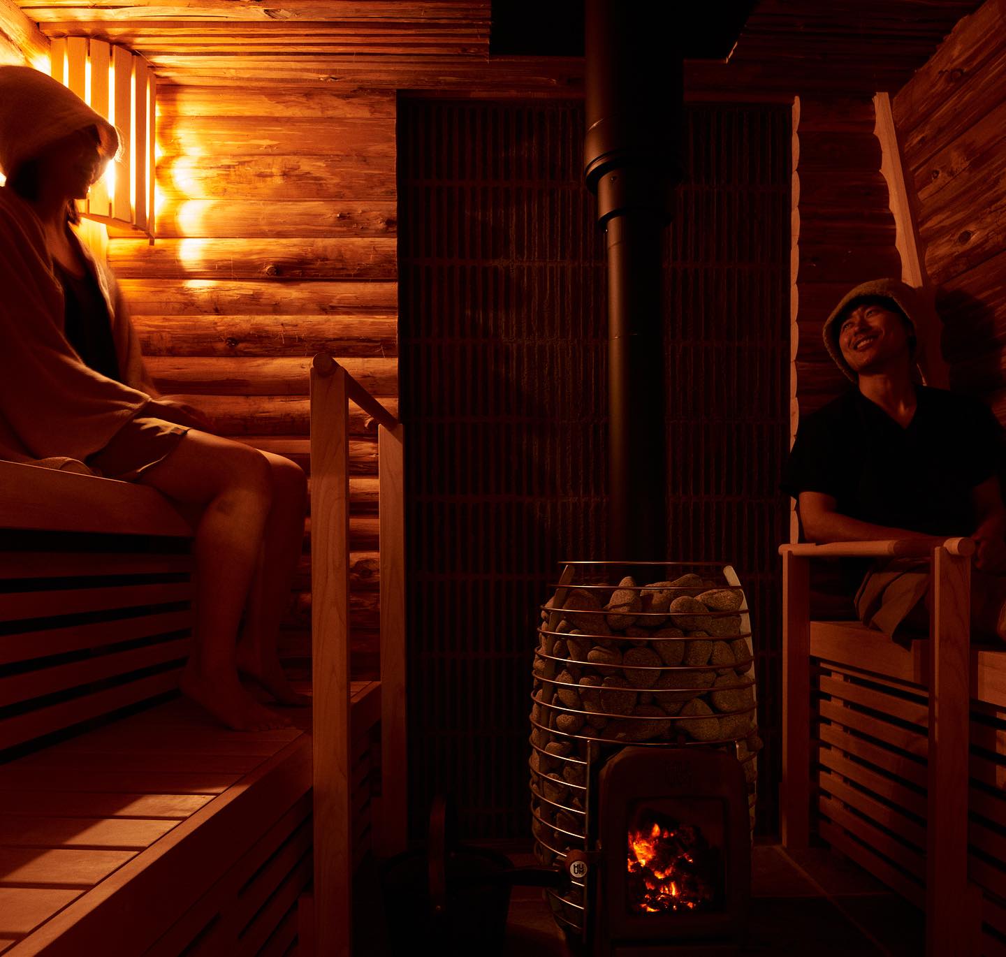 ห้องซาวน่าของที่นี่ก็เคยเป็นโกดังเก่ามาก่อนอีกด้วย อีกทั้งอุตสาหกรรมไม้ของโอคุทามะมีประวัติศาสตร์มาอย่างยาวนาน ไม้จากที่โอคุทามะจึงถือได้ว่าเป็นของขึ้นชื่อจึงนำมาใช้เป็นฟืนเพื่อให้ความร้อนและความหอมในซาวน่า ห้องซาวน่าก็ทำมาจากไม้ฮิโนกิอีก รับรองเลยว่าถ้าได้เข้าซาวน่าสักครั้งจะรู้สึกผ่อนคลายจากกลิ่นหอมของไม้ที่อบอวลอย่างแน่นอน