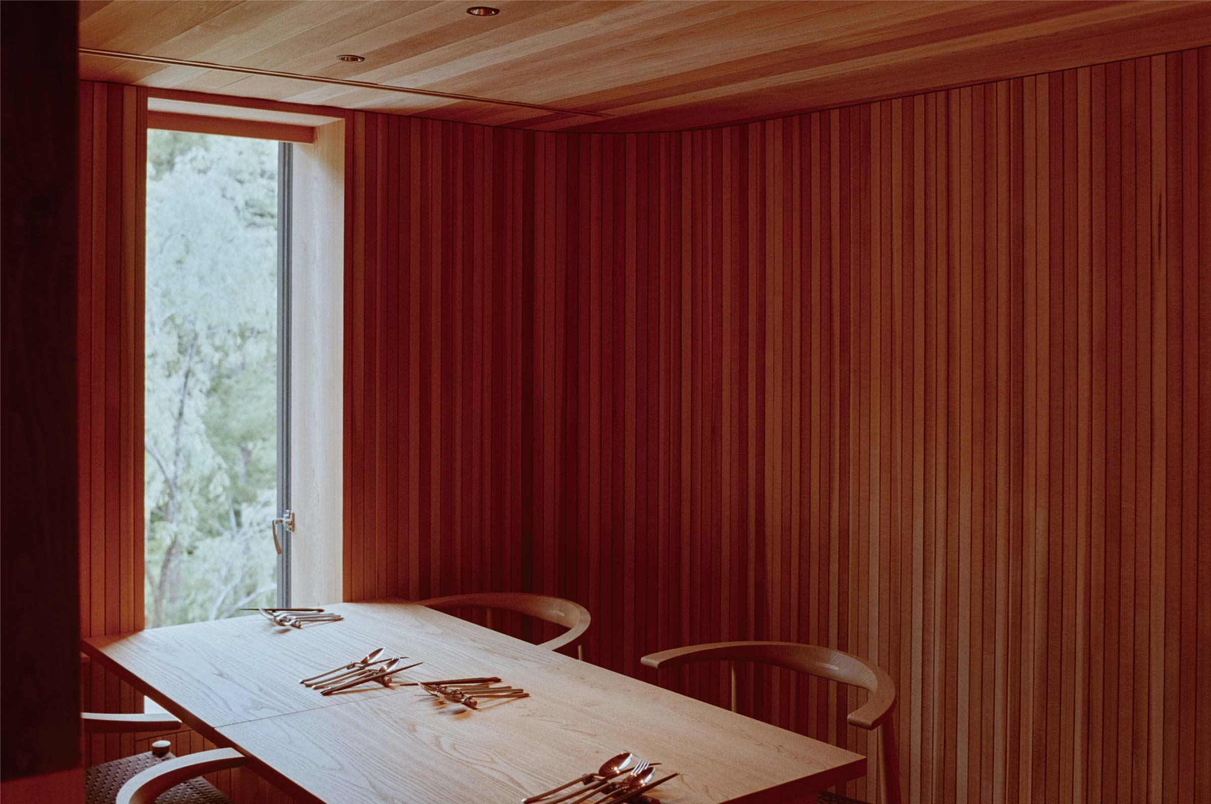 ชั้นสองจะเป็นร้านอาหาร ส่วนชั้นหนึ่งจะเป็นแผนกต้อนรับของโรงแรม ภายในอาคารจะตกแต่งด้วยไม้นานาพันธุ์ อาทิ ไม้ฮิโนกิ ไม้ซาวาระ ด้วยกลิ่นของไม้จะทำให้เรารู้สึกผ่อนคลายขณะนั่งรับประทานอาหาร และที่สำคัญผู้ออกแบบภายในคือ “คุณยาสุชิ โฮริเบะ (Yasushi Horibe)” สถาปนิกชื่อดังผู้ออกแบบห้องพักและพื้นที่ส่วนกลางของเรือสำราญสุดหรู “Guntû” อีกด้วย