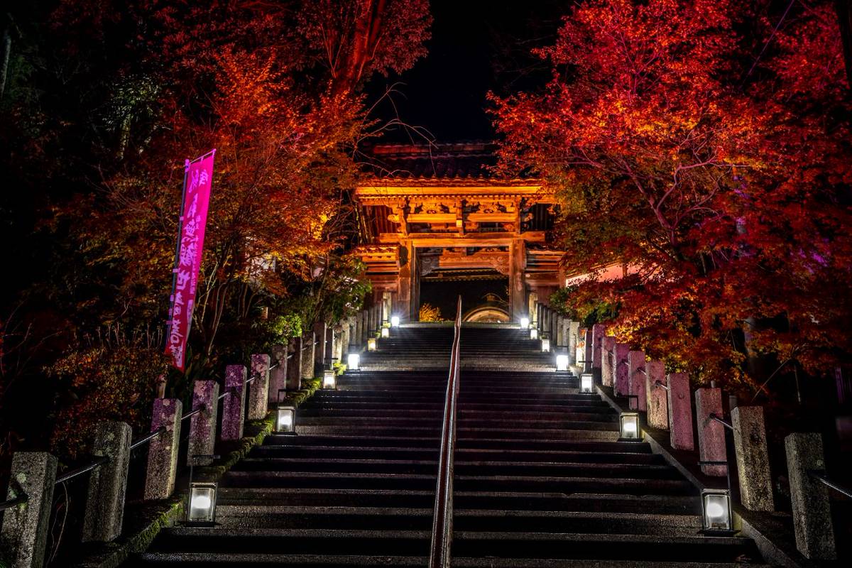 ทั่วทั้งบริเวณทางเข้าของวัดและสวนโดยรอบ จะถูกประดับไปด้วยโคมไฟคุมิโกะ (Kumiko Lantern) ส่องแสงเรืองรองซึ่งเป็นงานฝีมือดั้งเดิมจากชาวบ้านในแถบทัตสึรุฮามะ (Tatsuruhama) ซึ่งเป็นตำบลหนึ่งของเมืองนานาโอะนั่นเอง