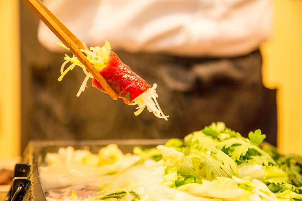 สำหรับเมนูเนื้อกวางที่ดูออกเป็นสไตล์ญี่ปุ่นที่สุดก็คือ โมมิจินาเบะ (Momiji Nabe) ซึ่งคำว่า “โมมิจิ” ในภาษาญี่ปุ่นหมายถึง “ใบเมเปิ้ล” หรือ “ใบไม้เปลี่ยนสี” ส่วน “นาเบะ” คือ “หม้อไฟ” ดังนั้นต่อให้รู้คำศัพท์ทั้งสองก็ไม่อาจเดาได้เลยว่ามันคือเมนูอะไร คาดว่าหากเรียกตรงๆ ว่าหม้อไฟเนื้อกวางอาจทำให้หลายคนไม่กล้าที่จะกิน จะเห็นได้ว่าการตั้งชื่อเลี่ยงเช่นนี้มีในวัตถุดิบอื่นๆ ด้วย เช่น เนื้อม้าจะเรียกว่า “เนื้อซากุระ” เป็นต้น