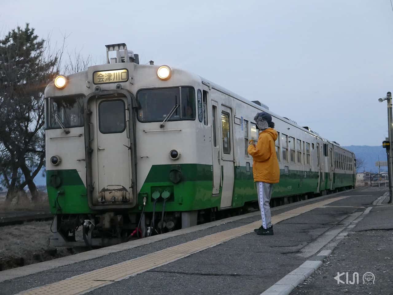 คราวนี้เราบังเอิญได้จังหวะถ่ายรูปรถไฟที่มีไม่กี่ขบวนได้พอดี ช่างเป็นรถไฟที่มีความอบอุ่นแบบบ้านๆ ที่มีเสน่ห์เฉพาะตัวต่างจากรถไฟในเมืองใหญ่ แถมระหว่างนั่งก็มองเห็นวิวของฟุกุชิมะที่สุดยอดไปเลย ตัดสินใจได้แล้ว ขอลงที่สถานีไอสึทาคาดะ (Aizu-Takada Station) แล้วกัน