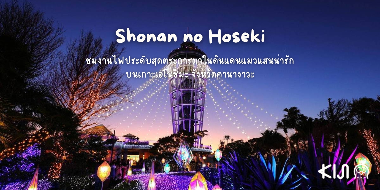 Shonan no Hoseki เทศกาลไฟประดับที่มีความหมายว่า “อัญมณีแห่งโชนัน” เริ่มจัดขึ้นครั้งแรกเมื่อปี ค.ศ. 1999 โดยงานนี้มีศูนย์กลางความตระการตาอยู่ที่เอโนชิมะซีแคนเดิล (Enoshima Sea Candle) หอคอยชมวิวความสูง 60 เมตรในสวนซามูเอลค็อกกิ้ง (Samuel Cocking Garden) ซึ่งบริเวณนี้จุดสูงสุดของเกาะที่จะถูกส่องสว่างขึ้นยามค่ำคืนกับการจัดไลท์อัพบนพื้นที่ที่มีเส้นผ่าศูนย์กลางมากกว่า 70 เมตร เพลิดเพลินกับงานไฟประดับสุดระยิบระยับในมุมมองแบบ 360 องศาที่เห็นทั้งวิวท้องทะเลและภูเขา