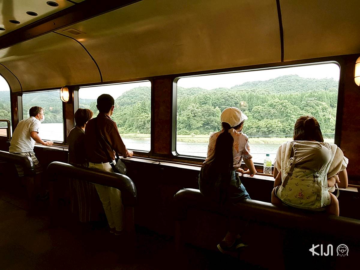 ในขบวนมีจุดนั่งชมวิวสวยๆ มากมาย ทั้งตู้หมายเลข 1 Okojo Observation Car และตู้หมายเลข 4 ถ้าใครอยากมองควันจากปล่องรถไฟด้วยเชิญตู้ 1 แต่ถ้าชอบความสงบตู้หมายเลข 4 คือโซฟาที่หันหน้าเข้าหาหน้าต่างคือมุมโปรดของเราเลย