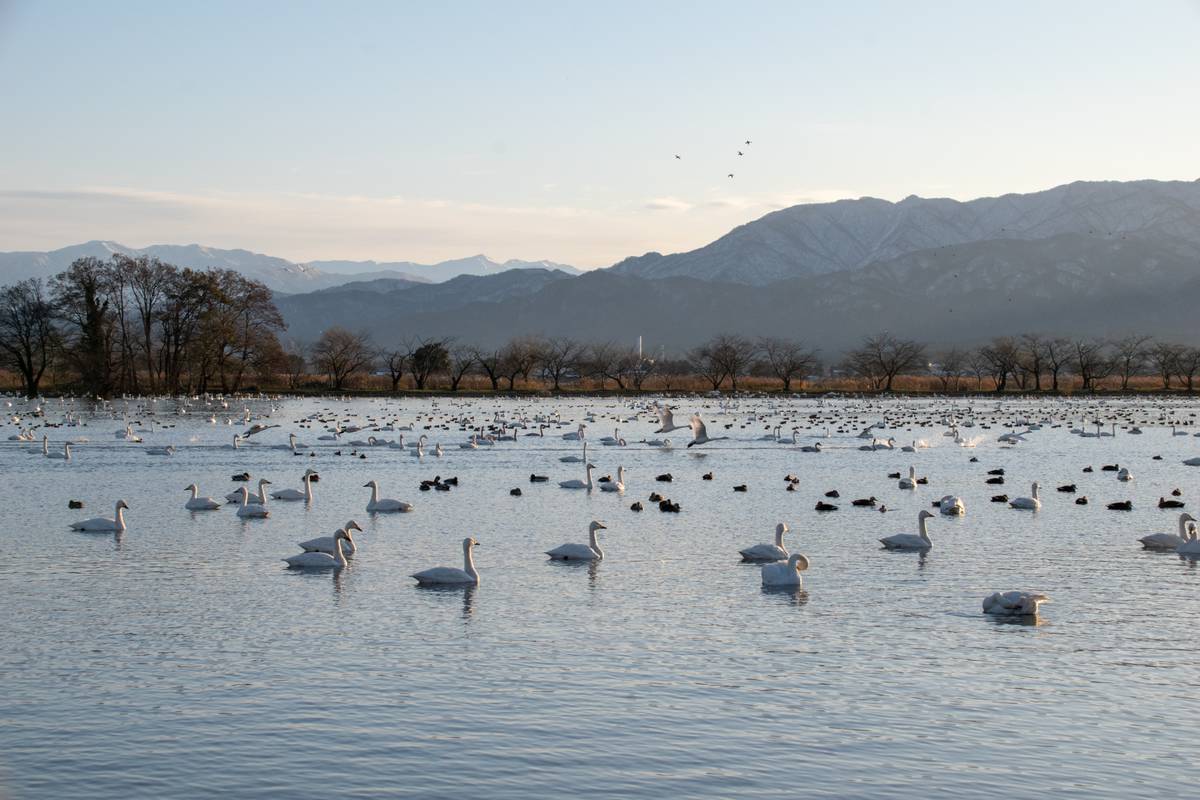 Niitsu City บริเวณโดยรอบสถานีนีตสึมีแหล่งท่องเที่ยวน่าสนใจมากมาย อาทิ Lake Hyoko ทะเลสาบที่มีชื่อเสียงในการเป็นที่อยู่อาศัยของหงส์อพยพกว่า 5,000 ตัว ถ้าอยากดูแนะนำให้มาในช่วงกลางเดือนตุลาคม ไฮไลท์ที่น่าสนใจคือจะมีการให้อาหาร 3 ครั้งต่อวันและอนุญาตให้นักท่องเที่ยวให้อาหารฝูงหงส์ได้ด้วยนะ