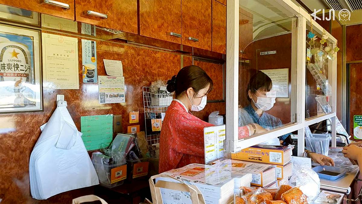 ลองนึกภาพรถไฟเมืองไทยที่มักจะมีพ่อค้าแม่ค้าขึ้นรถไฟมาเดินขายของ สำหรับญี่ปุ่นนั้นคล้ายๆ กัน แต่เป็นพ่อค้าแม่ค้ามาตั้งแผงที่ชานชาลารอขายพวกเราอย่างเป็นระเบียบ สินค้ามีหลากหลาย เช่น เบนโตะ ไอศกรีม ของที่ระลึกต่างๆ เราแนะนำให้ซื้อไอศกรีมกินเป็นของหวานตบท้ายเบนโตะลิมิเต็ด ลงตัวสุดๆ