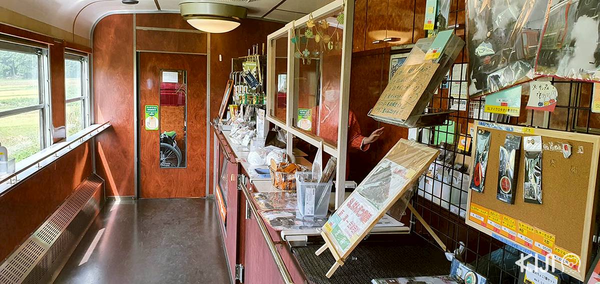 ตู้ 5 แบ่งพื้นที่ส่วนหนึ่งเป็นตู้เสบียง ที่นี่มีสินค้า Limited Edition จำหน่ายเฉพาะบนรถไฟขบวนนี้หลายอย่าง เช่น เบนโตะ SL Banetsu Monogatari เครื่องเขียน พวงกุญแจ สินค้ากระจุกกระจิกลายรถไฟ ขนม และเครื่องดื่มนานาชนิด แน่นอนว่ามีโปสการ์ดและแสตมป์ขายด้วย