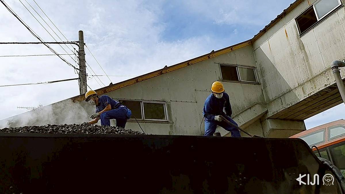 ตลอดการเดินทาง รถไฟจะหยุดพักเป็นระยะเพื่อเติมถ่านหิน โดยเฉพาะที่สถานี Tsukawa จะจอดนานหน่อย เมื่อเราเดินลงไปที่ชานชาลา จะเห็นภาพพนักงานรถไฟตรวจเช็คสภาพเครื่องและปีนขึ้นไปตักถ่านหินอย่างแข็งขันท่ามกลางผู้คนที่มุงดูจากรอบทิศ นอกจากจะหาชมสดๆ ได้ยาก เรายังสัมผัสได้ถึงความตั้งใจของพนักงานและความชื่นชมของทุกคนที่ตั้งใจมารอดูทั้งจากด้านนอกและด้านในสถานี สะท้อนให้เห็นถึงความผูกพันของคนในชุมชนกับรถไฟไม่น้อยเลย