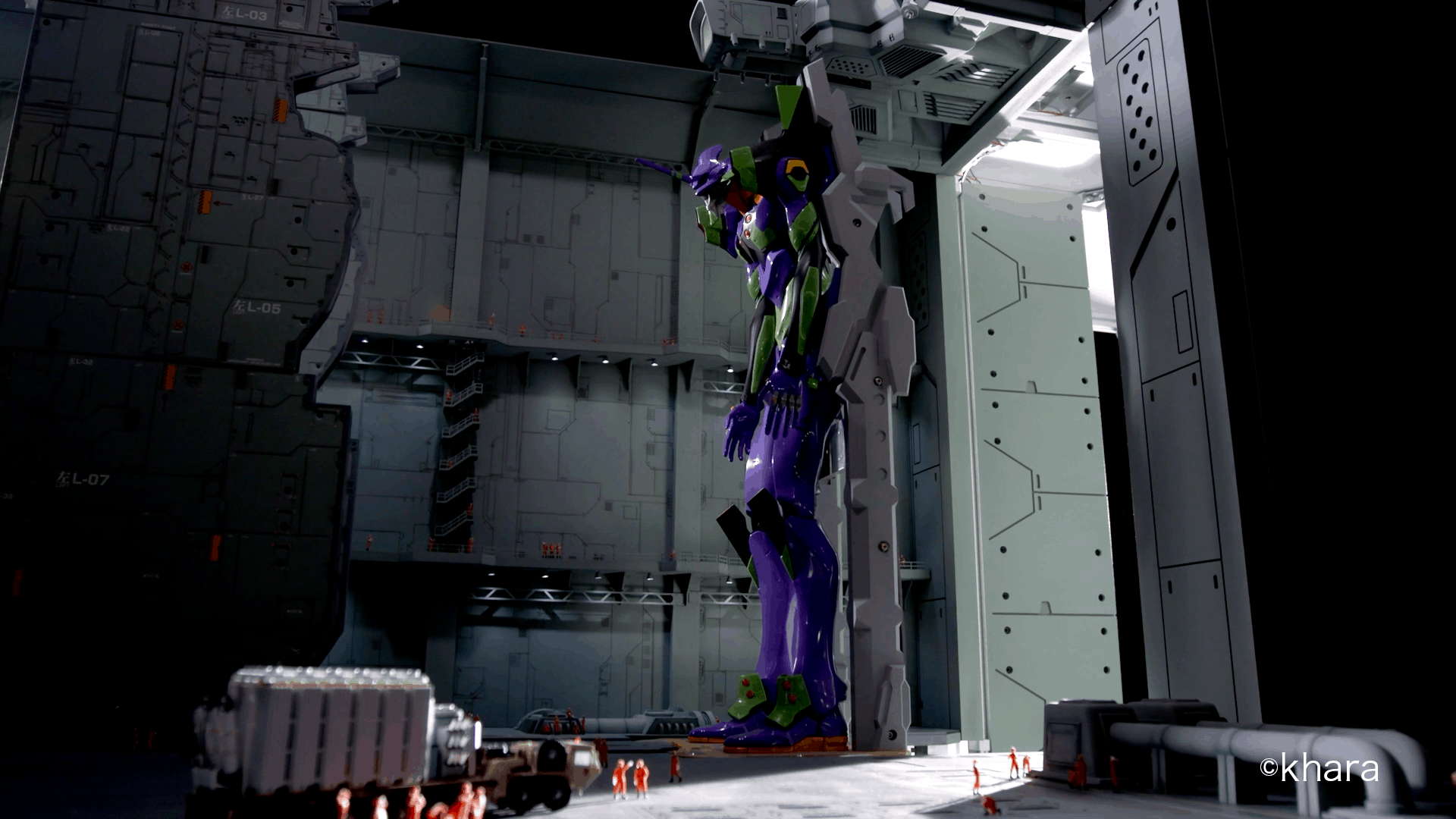 Evangelion Cage จัดแสดงฐานทัพอีวาเกเลียนและโมเดลเคลื่อนไหวได้ EVA Unit-00, Unit-01 และ Unit-02 ราวกับฉากในแอนิเมชัน