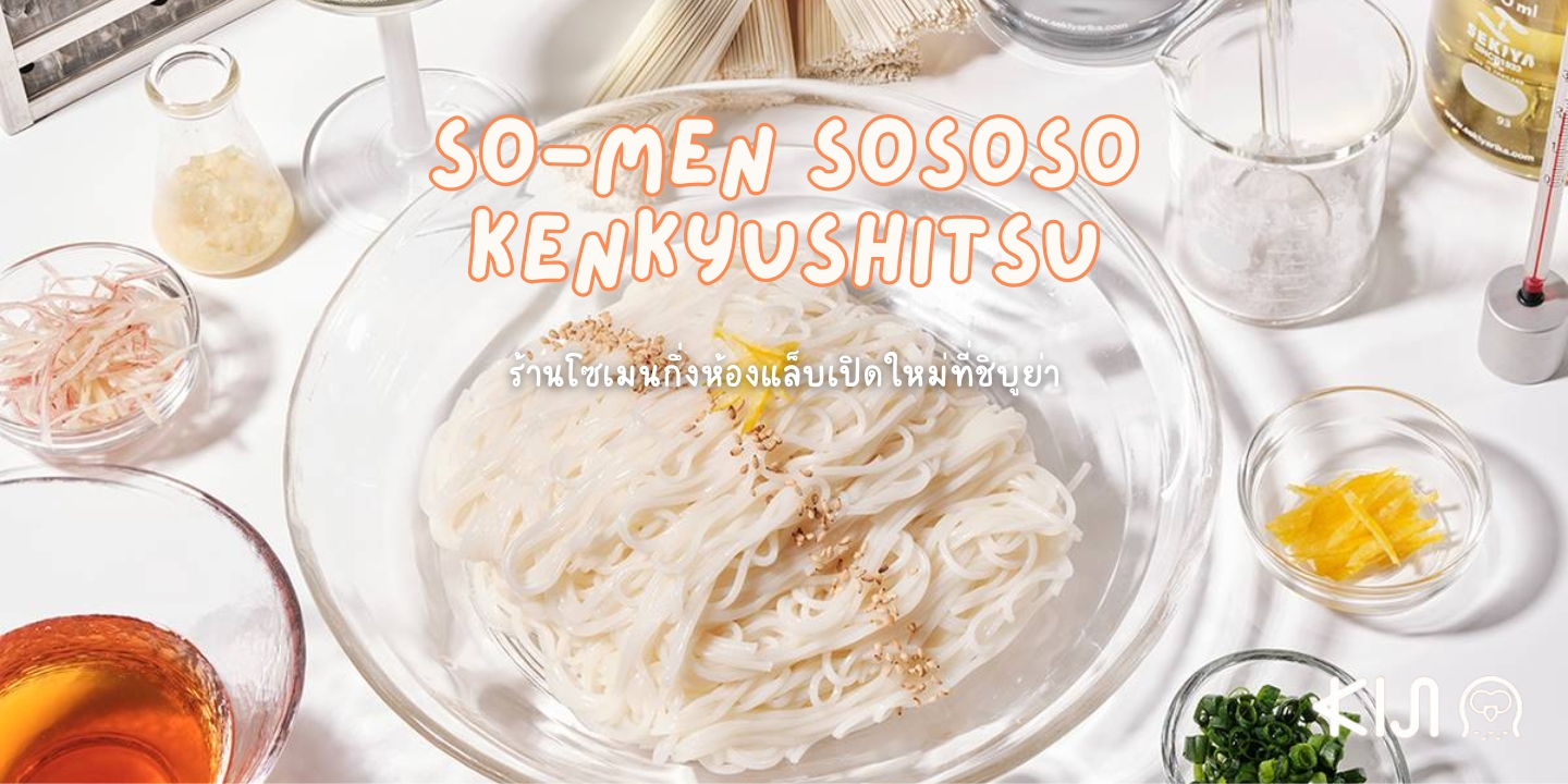 SO-MEN SOSOSO คือแบรนด์ร้านอาหารเฉพาะทางที่เชี่ยวชาญด้านเส้นโซเมน (Somen) ซึ่งเป็นอาหารประเภทเส้นชนิดหนึ่งของญี่ปุ่นที่มีชื่อเสียงรองลงมาจากราเมน อุด้ง โซบะ ก่อนหน้านี้มี 2 สาขาในกรุงโตเกียว แต่สำหรับสาขาใหม่ที่ชิบูย่าใช้ชื่อว่า SO-MEN SOSOSO Kenkyushitsu ซึ่งคำที่ห้อยท้ายมานั้นหมายถึง “ห้องวิจัย” “ห้องแล็บ” สาขานี้จึงเปรียบเสมือนสถานที่ที่ลูกค้าสามารถอิ่มอร่อยกับเส้นโซเมนได้แบบถึงพริกถึงขิงเหมือนกับการวิจัยซึ่งศึกษาอย่างลึกซึ้งนั่นเอง