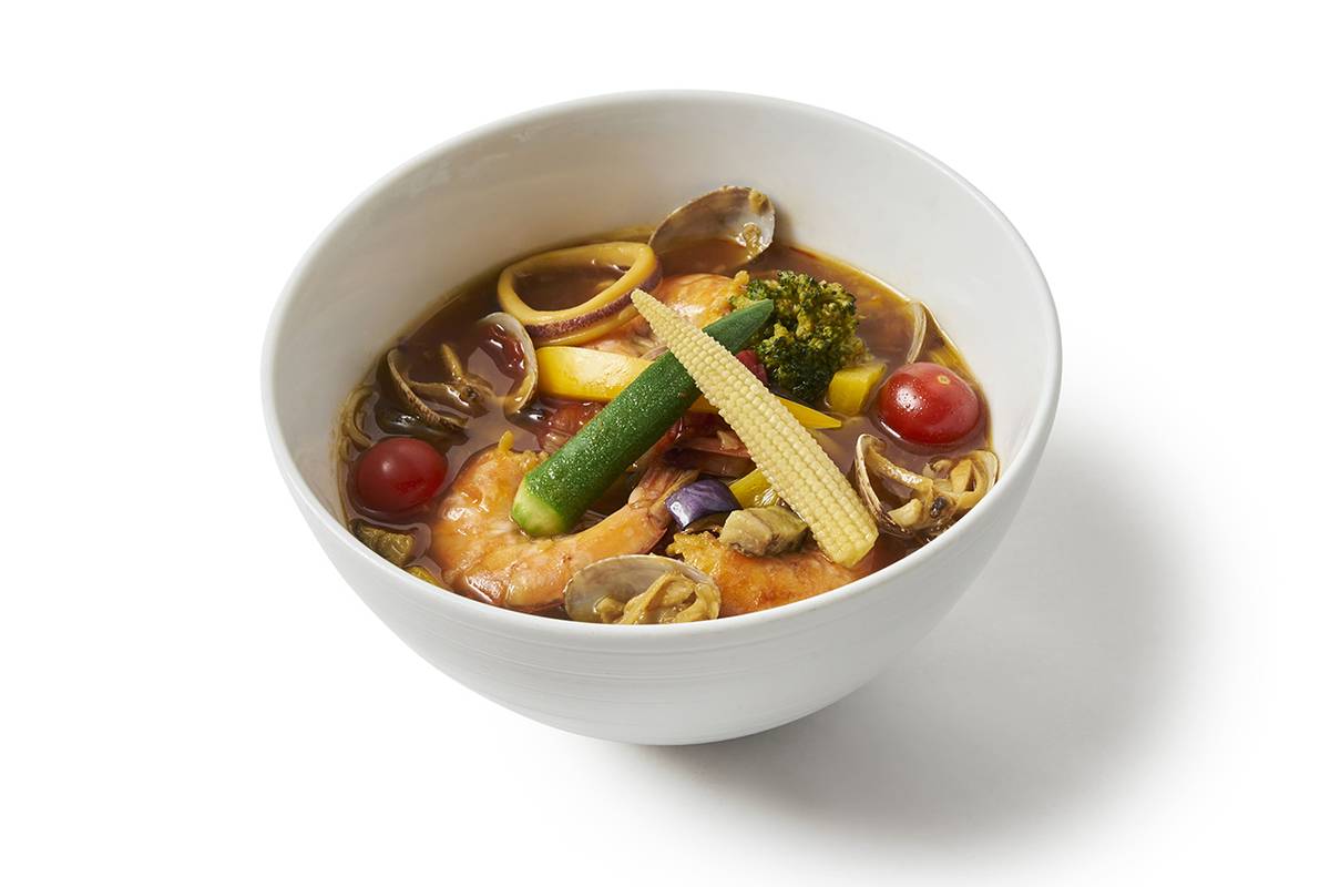 Cheese Keema Curry Somen (1,320 เยน) เส้นโซเมนที่ปรุงรสชาติแบบแกงกะหรี่คีมา เมนูพิเศษที่จำหน่ายเฉพาะสาขาชิบูย่าTappuri Yasai to Gyokai Soup Somen (1,650 เยน) เส้นโซเมนในซุปผักและซีฟู้ด เมนูพิเศษที่จำหน่ายเฉพาะสาขาชิบูย่า
