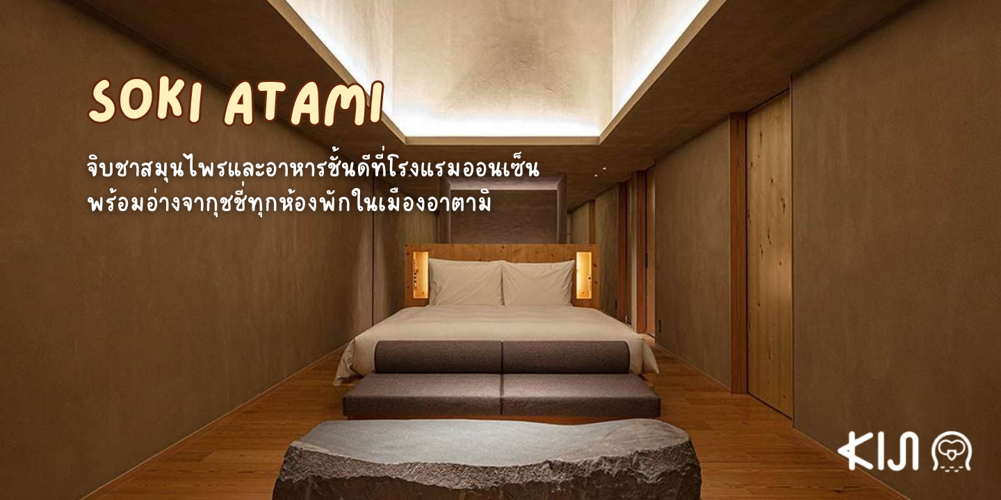 SOKI ATAMI โรงแรมออนเซ็นสไตล์โมเดิร์นพร้อมอ่างจากุชชี่ทุกห้องพักเคล้าบรรยากาศอบอุ่นเรียบหรูในอาตามิ เมืองติดชายทะเลที่เต็มไปด้วยสภาพแวดล้อมทางธรรมชาติงดงามทั้งทะเลและภูเขา อีกทั้งยังเป็นแหล่งน้ำพุร้อนขึ้นชื่อใกล้กรุงโตเกียว ให้บริการห้องพักทั้งหมด 54 ห้อง แบ่งออกเป็น 10 ประเภทที่สามารถมองเห็นวิวทิวทัศน์อันเป็นเอกลักษณ์ของอาตามิทั้งภูเขาเขียวขจี อ่าวอาตามิ และท้องฟ้าที่เต็มไปด้วยดวงดาว