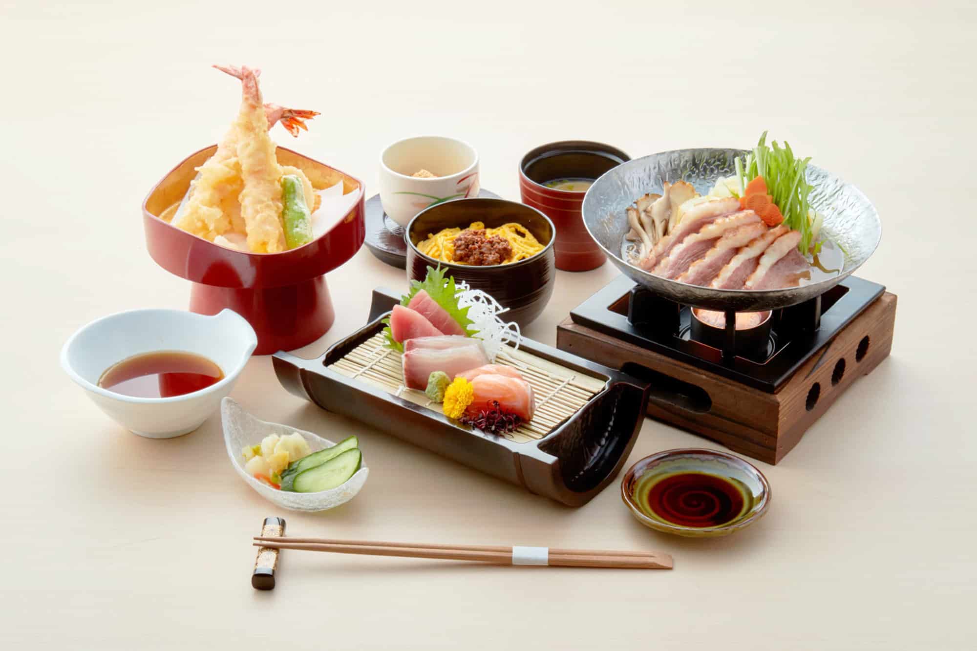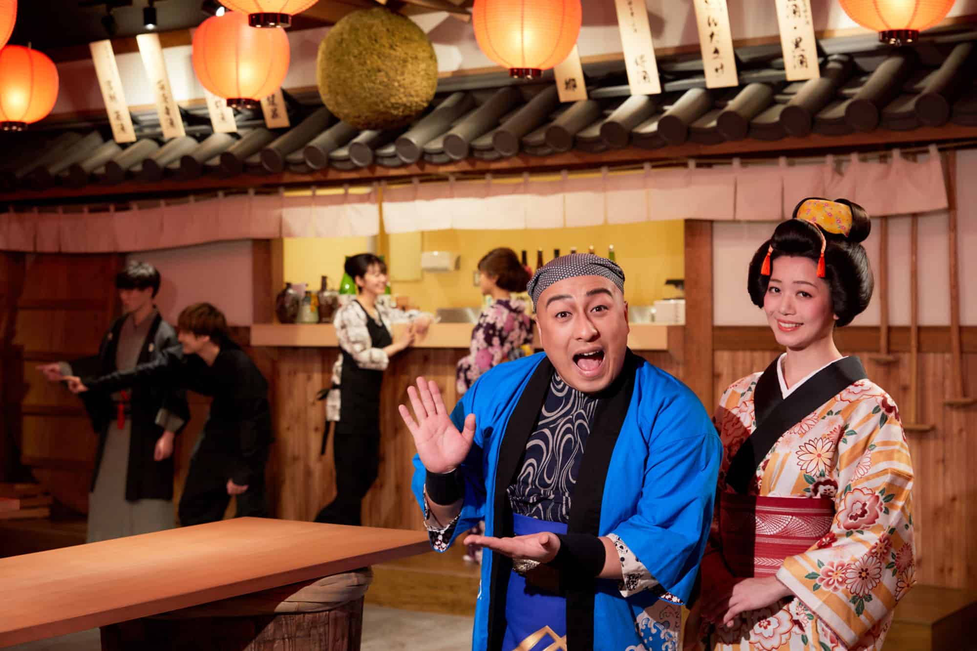 ถ้าท้องเริ่มร้องไม่ต้องกังวลไป เพราะที่นี่มีร้านอาหาร คาเฟ่ และบาร์ให้เลือกอิ่มอร่อยได้เต็มที่ ซึ่งบรรยากาศก็ล้วนแต่มีสตอรี่ที่น่าสนใจ เช่น Kappo Ukiyo-Tei ได้จำลองภัตตาคารญี่ปุ่นให้เหมือนกับร้านของเชฟสึโบไน เซกิไซ (Sekisai Tsubonai) ผู้ปรุงอาหารถวายให้กับโอดะ โนบุนากะ (Nobunaga Oda) เมื่อประมาณ 500 ปีก่อน