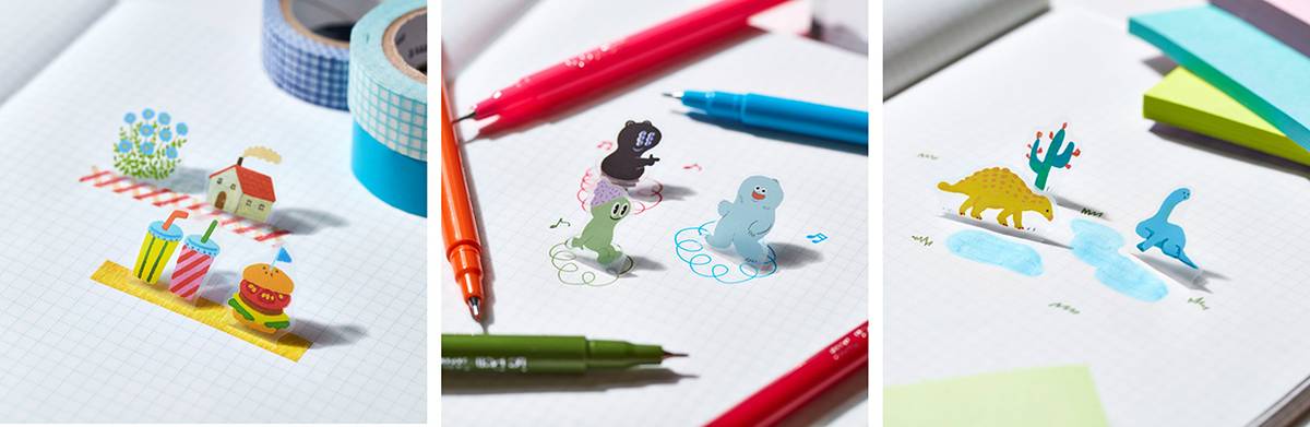 สร้างผลงานป๊อปอัพในสมุดบันทึกและการ์ดข้อความได้ง่ายๆ ด้วยสติ๊กเกอร์ 3 มิติแสนน่ารักจาก HITOTOKI แบรนด์เครื่องเขียนสุดคิวท์ที่ทำให้ผู้คนเพลิดเพลินกับช่วงเวลาจดบันทึก ซึ่งจุดเด่นของสติ๊กเกอร์แบบใ่หม่นี้คือสามารถยึดติดกับหน้ากระดาษในลักษณะตั้งขึ้นทำให้ดูเหมือนกับภาพสามมิติ ส่วนตัววัสดุเป็นสติ๊กเกอร์ฟิล์มใสที่มีกาวแบบอ่อนๆ จึงดึงแปะซ้ำได้โดยไม่กินเนื้อกระดาษ ยิ่งใช้ร่วมกับของตกแต่งอื่นๆ อย่างเทปวาชิ ปากกาสีสันต่างๆ ก็ยิ่งน่ารักขึ้นไปอีก