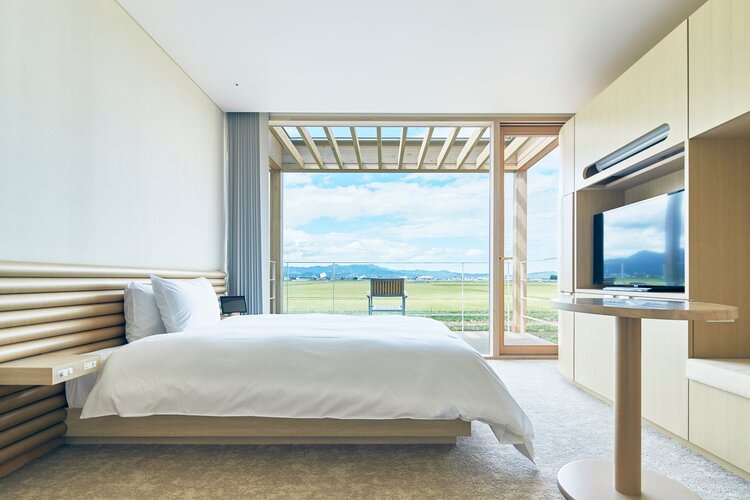 เเม้ว่าจะเป็นโรงแรมที่อยู่กลางทุ่งนา แต่ที่นี่มีห้องพักมากถึง 119 ห้อง แบ่งออกเป็น 3 ประเภทใหญ่ๆ คือ Single Room ห้องขนาด 22 เมตร รองรับได้ 1-2 คน, Twin Room รองรับได้ 2-4 คน และ Family Room ห้องขนาดใหญ่สองชั้น ซึ่งการออกแบบภายในของทุกห้องใช้เฟอร์นิเจอร์ที่ทำจากไม้ทั้งหมดเพื่อให้แขกรู้สึกกลมกลืนกับทิวทัศน์ธรรมชาติด้านนอก