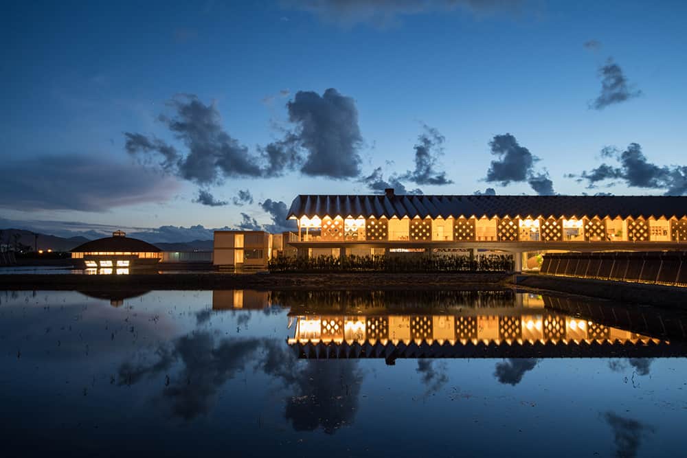 โรงแรมบนผืนนาที่กลมกลืนไปกับภูมิทัศน์ชนบทโดยรอบ ท้องน้ำใสกระจ่างและผืนนากว้างมาพร้อมแนวคิด “หนีความวุ่นวายในเมืองใหญ่ไปอยู่บ้านนา” โดยได้รับอินสไปเรชั่นมาจากภูมิทัศน์ของท้องนาซึ่งถือเป็นสัญลักษณ์ของย่านโชไนแห่งนี้นั่นเอง