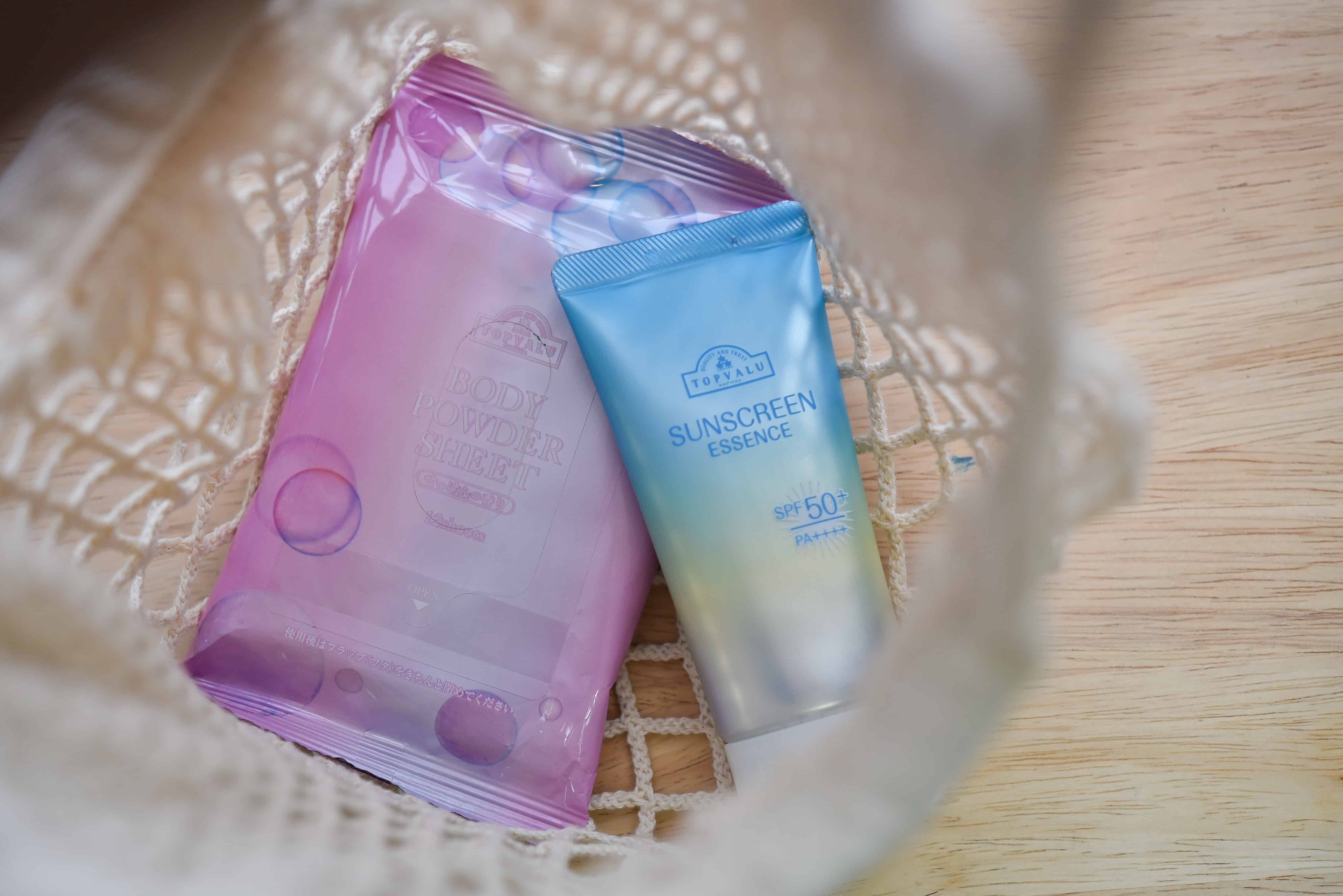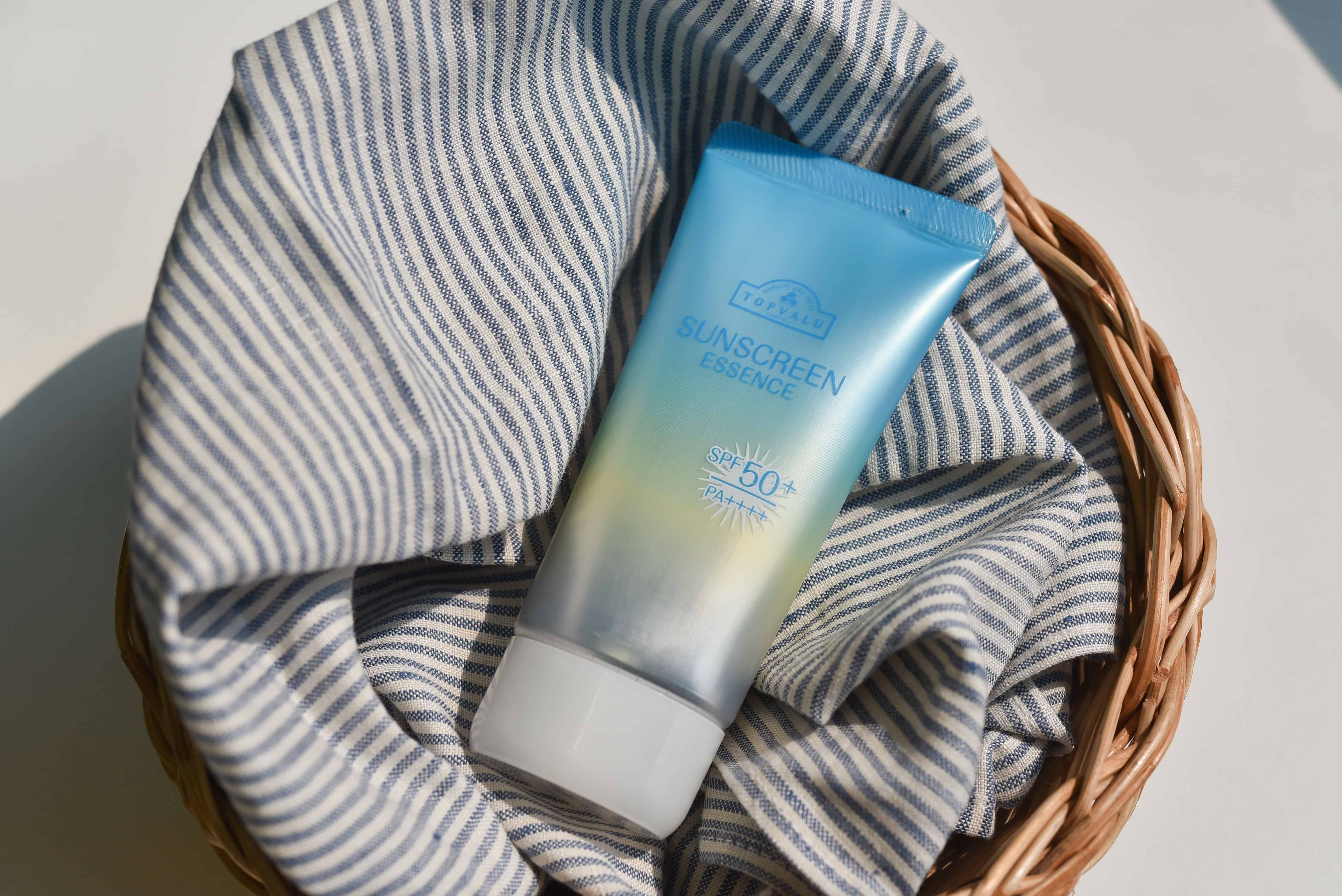 ITEM 1 Sunscreen Essence ผลิตภัณฑ์ตัวใหม่จาก TOPVALU โลชั่นกันแดด ที่ทาได้ทั้งผิวหน้าและผิวกาย มี spf ถึง 50+/ และ pa+++ ผลิตภัณฑ์เป็นเนื้อเอสเซนต์ทำให้ซึมเข้าสู่ผิวได้อย่างรวดเร็ว ให้ความรู้สึกบางเบา เกลี่ยง่าย ไม่เหนอะหนะ แค่ทาทิ้งไว้ไม่กี่นาที ก็ออกแดดได้เลย ไม่ต้องเสียเวลารอนาน