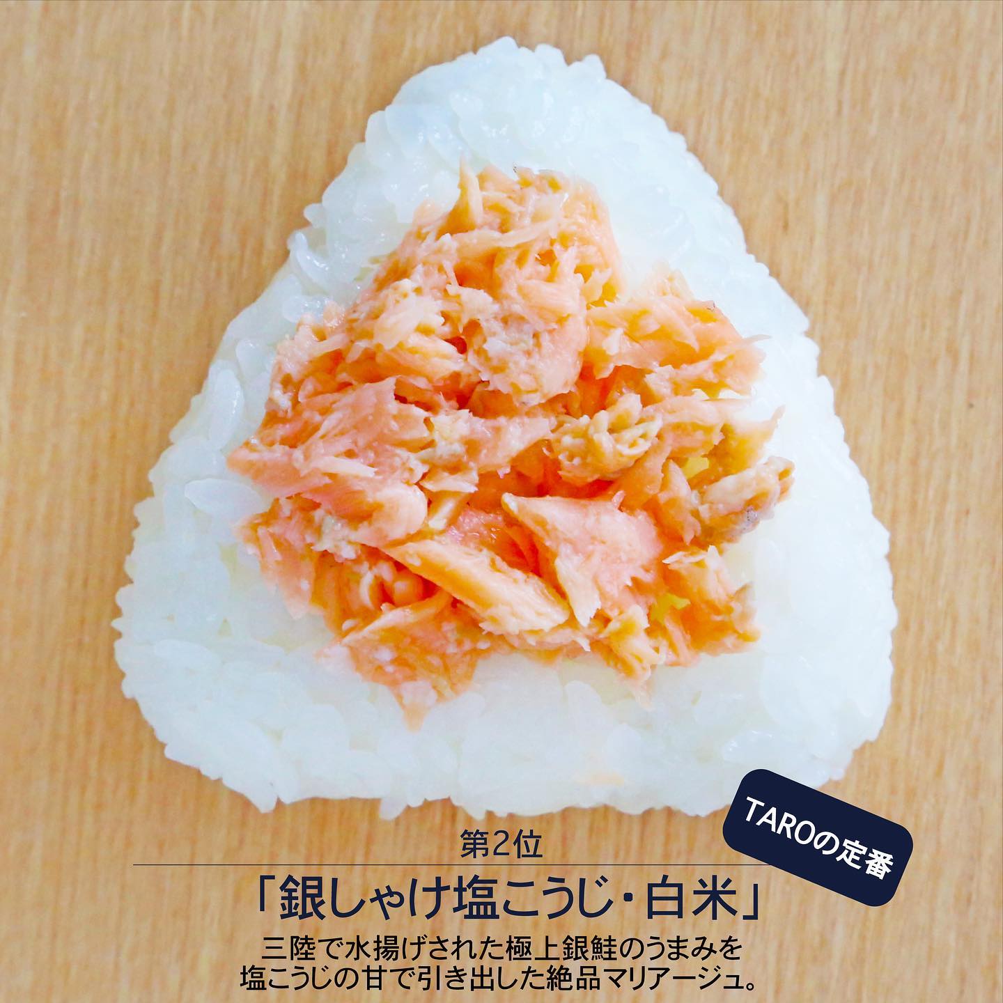 อีกตัวที่น่าลองเหมือนกันก็คือ ข้าวปั้นปลาแซลมอนสีเงินจากซันริกุ หมักด้วยเกลือ และ หัวเชื้อโคจิ ราคา 250 เยน (รวมภาษี) เป็นการผสมผสานกันอย่างลงตัว ระหว่างเนื้อปลาแซลมอนสีเงิน ในแถบซันริกุ (Sanriku) หรือพื้นที่ตอนบนของภูมิภาคโทโฮคุ เข้ากับรสหวานอมเปรี้ยว ที่เกิดจากเกลือผสมกับหัวเชื้อโคจินั่นเอง