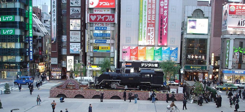 รถไฟยุคบุกเบิกหน้าสถานี Shimbashi ที่มาภาพ: compathy.net