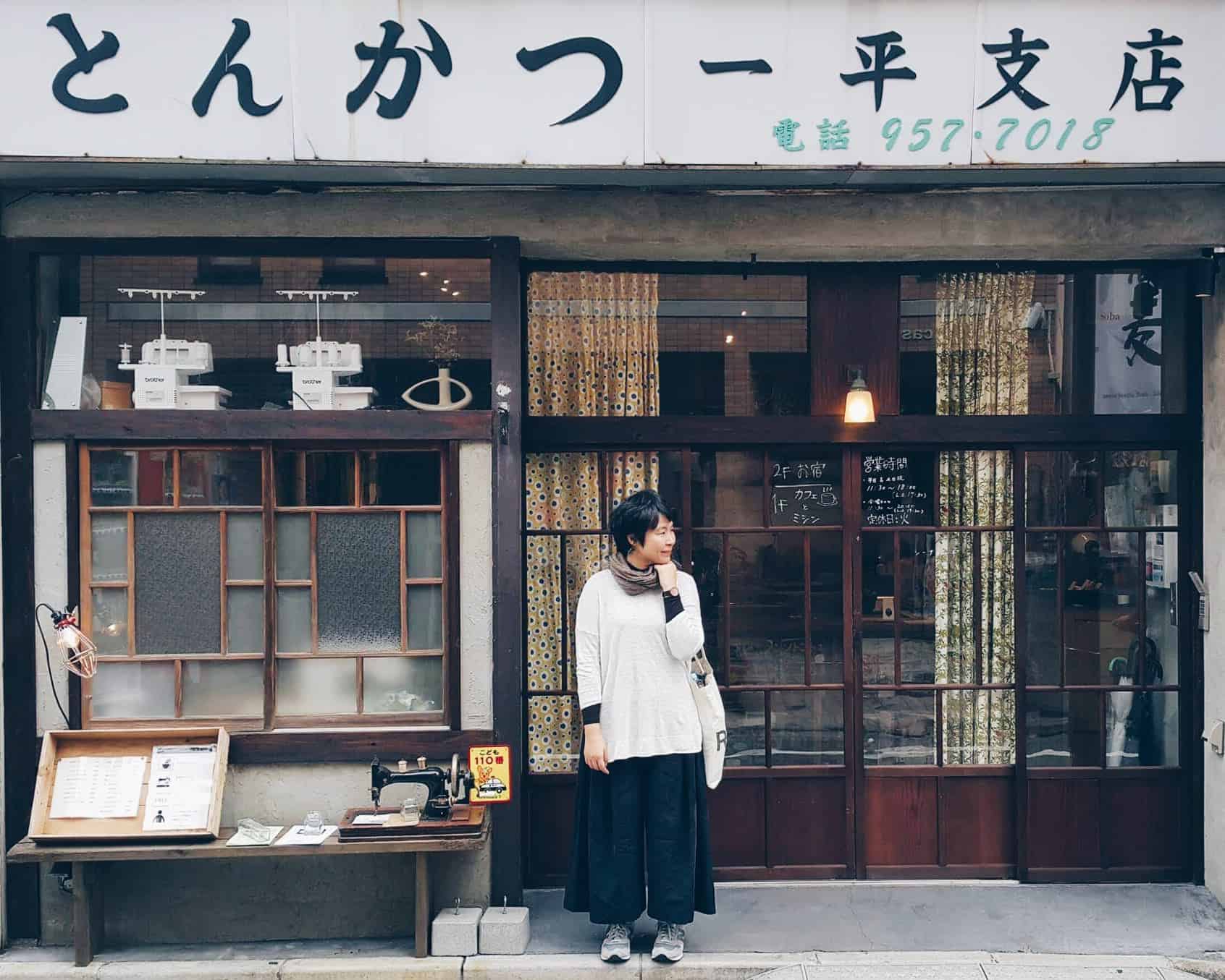 ฉันชอบเย็บผ้าและคลุกคลีกับงานผ้ามาตลอด จึงอดถามจูลี่ไม่ได้เรื่องแนวความคิดที่นำจักรเย็บผ้า มาไว้ในคาเฟ่ รวมถึงที่มาของชื่อ Sheena and Ippei เธอเล่าให้ฟังว่า เดิมที่นี่เป็นร้านขายหมูทอดทงคัตสึ ชื่อ Tokatsu Ippei ซึ่งเป็นที่รักของคนในชุมชน เมื่อเจ้าของร้านเสียชีวิตจึงปิดกิจการลง เจ้านายของเธอซึ่งทำงานด้านการออกแบบสถาปัตยกรรม ผู้สนใจด้านการอนุรักษ์อาคารเก่า จึงเข้ามาปรับปรุงอาคารหลังนี้ให้กลับมีชีวิตขึ้นอีกครั้ง และเลือกใช้ “ผ้า” มาเป็นตัวเชื่อมความสนใจของคนต่างวัยในชุมชน รวมถึงคนต่างชาติ ต่างภาษาให้อยากมารู้จักที่นี่ด้วย ตัวจูลี่เองก็สนใจเรื่องการเย็บผ้า นั่นจึงเป็นเหตุผลที่เธอถูกเลือกให้มาดูแลที่นี่
