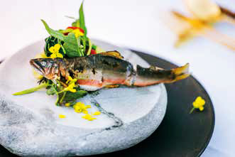 เมื่อได้สนุกกับการผจญภัยในรูปแบบต่างๆ จนร่างกายต้องการหาอะไรเพิ่มพลังแล้วนั้น ทางบริษัททัวร์ก็เตรียมอาหารค่ำมื้อพิเศษไว้ให้อีกเช่นกัน ซึ่งได้เชฟฝีมือดีจากร้าน Caravansarai เจ้าของรางวัลมิชลินกรีนสตาร์ (Michelin Green Star) และรางวัลบิบ กูร์มองด์ (Bib Gourmand) ที่ลงในคู่มือ MICHELIN Guide WAKAYAMA ฉบับปี 2022 มารังสรรค์เมนูจากธรรมชาติที่สดใหม่ให้ได้ลิ้มลองกันอีกด้วย