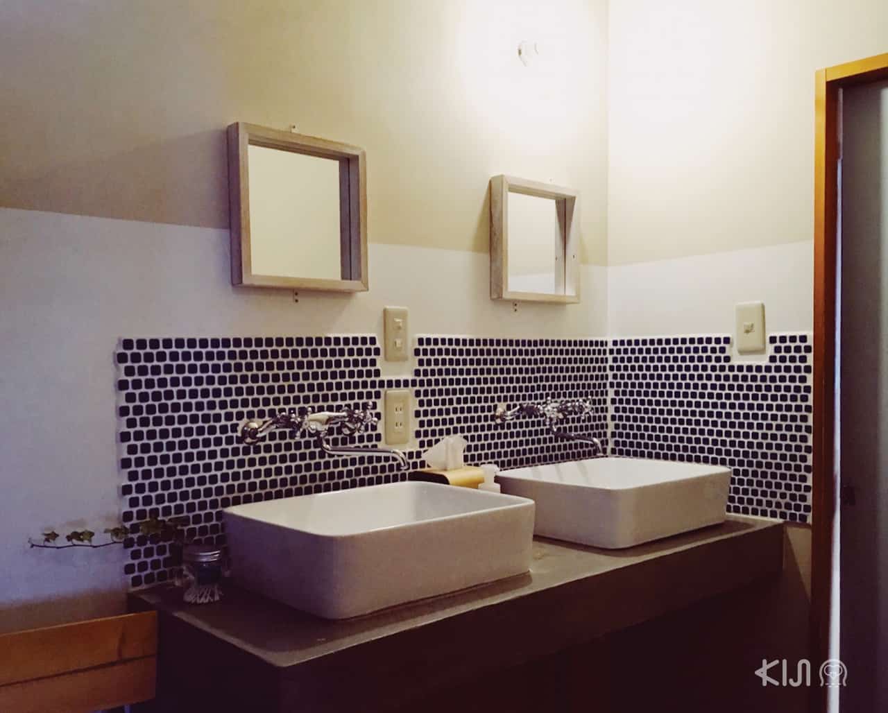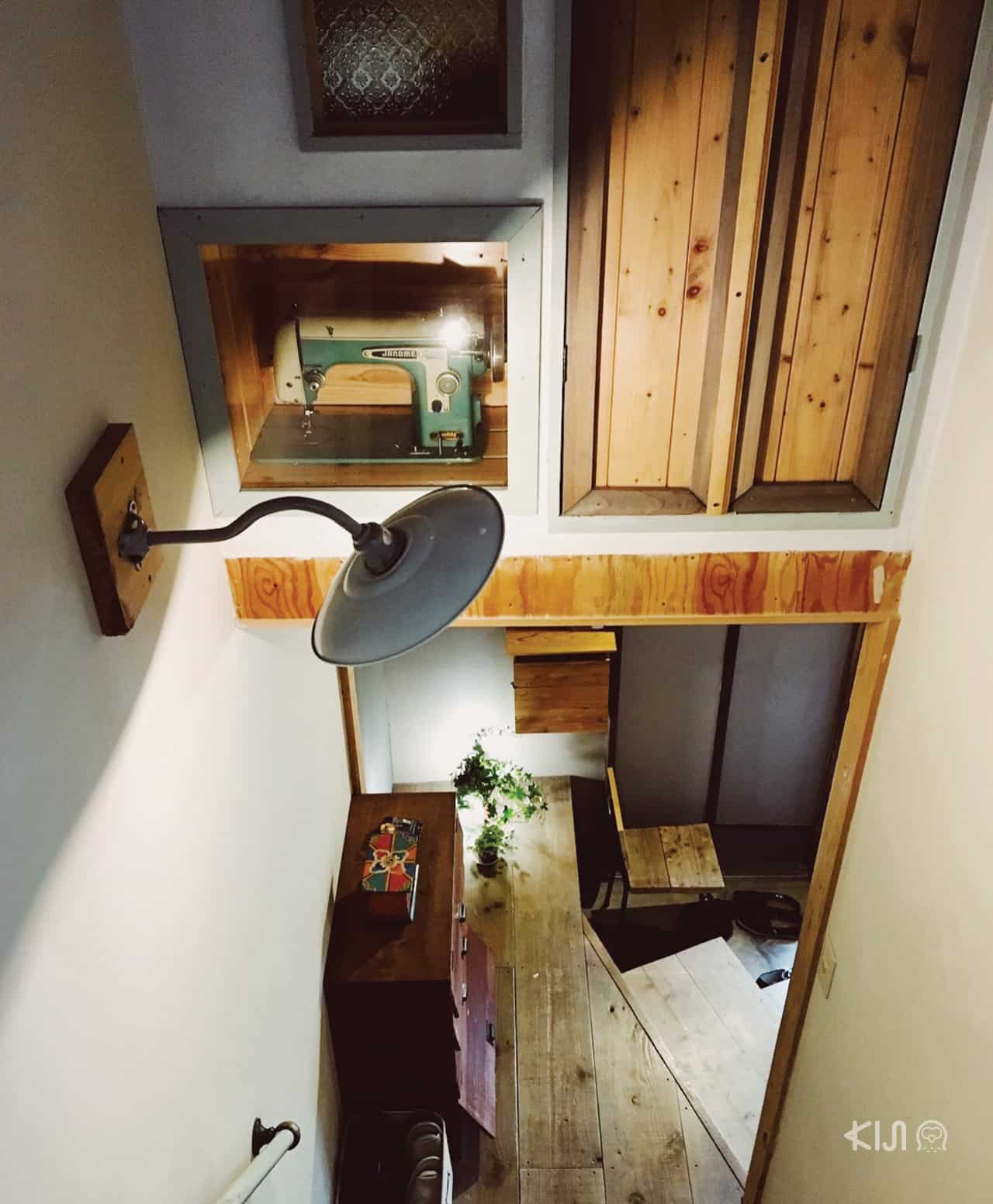 ตัวบ้านเป็นบ้านสองชั้น ชั้นล่างมีห้องพักรวมหนึ่งห้องอยู่ด้านหน้า ส่วนด้านหลังเป็นห้องพักผ่อนส่วนกลาง มีครัวเล็กๆ ให้ผู้มาพักสามารถประกอบอาหารได้ มีห้องอาบน้ำ สุขาแยกสำหรับผู้ชายและผู้หญิง ด้านในสุดเป็นลานสำหรับซักตากผ้า กั้นส่วนภายในบ้านด้วยประตูบานเลื่อนโบราณกรุกระจกช่วยให้มีแสงสวยๆ ส่องผ่านมายังห้องพักผ่อนทำให้บ้านเล็กดูโปร่งสบายกว่าขนาดของพื้นที่จริง มุมพักผ่อนที่การตกแต่งให้ความรู้สึกแบบ DIY ด้วยโซฟาไม้วางปลอกหมอนผ้าแบบทำเองกับโต๊ะกินข้าวเล็กๆ นี่เอง ที่ทำให้ฉันเชื่อว่าคงจะรู้สึกดีได้ในช่วงเวลาที่ต้องกลายมาเป็นคนเมืองใหญ่ (ชั่วคราว) อย่างโตเกียว