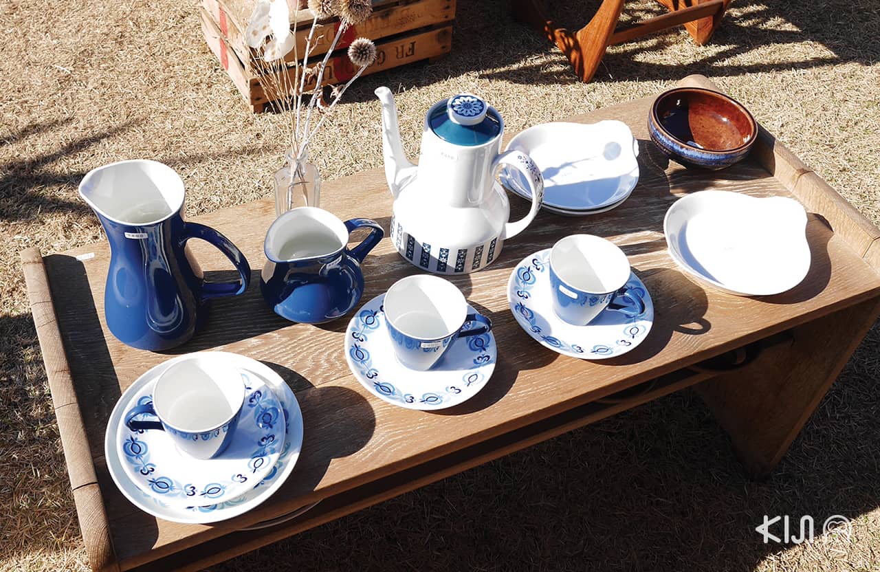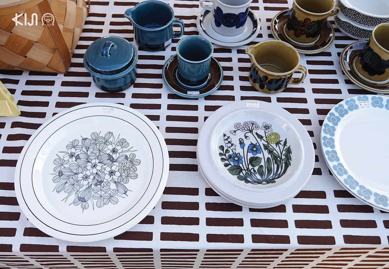 เท่าที่ฉันสังเกตเห็น แม้จะเป็นตลาดของเก่าแต่ข้าวของที่คัดมาส่วนใหญ่เรียกได้ว่าดูดีไม่มีโทรม โดยเฉพาะจานชามหรือชุดแก้วกาแฟที่เป็นแบรนด์จากประเทศกลุ่มสแกนดิเนเวียและยุโรปมีให้เลือกชมละลานตาในราคาที่โอเค (ไม่ต้องบินไปตามหาถึงประเทศเจ้าถิ่นเลยนะเนี่ย) แต่ก็มีสินค้าดีไซน์แบรนด์ฟินแลนด์ที่เป็นของใหม่ไม่ใช่ของวินเทจมาออกร้านด้วยละ