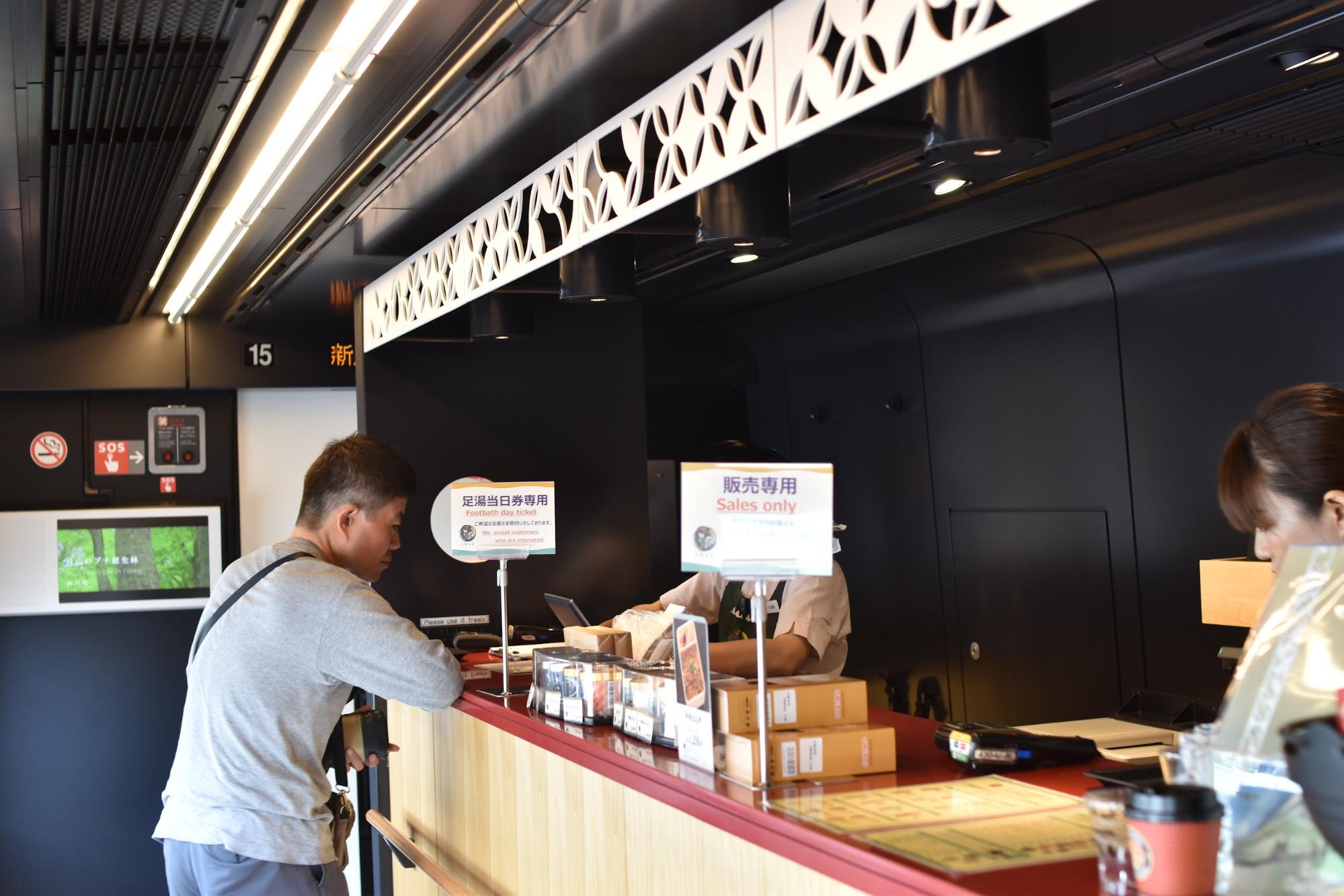 อย่างที่บอกไปว่าที่เลานจ์มีจำหน่ายผลิตภัณฑ์ OTOP ของยามากาตะ ตั้งแต่เครื่องดื่มท้องถิ่น น้ำผลไม้ขึ้นชื่อ เจลาโต้หลากรส ของกินเล่น และขนมขบเคี้ยว ยิ่งถ้าได้กินหลังแช่เท้าจะบอกว่าเป็นอะไรที่ชื่นใจเอามากๆ แต่ถ้าใครต้องการอุ่นท้องก่อนไปลุยมื้อหลักหลังจากนี้ที่เคาน์เตอร์บาร์ก็มีเบนโตะให้ซื้อหามารับประทานอยู่เหมือนกันนะ
