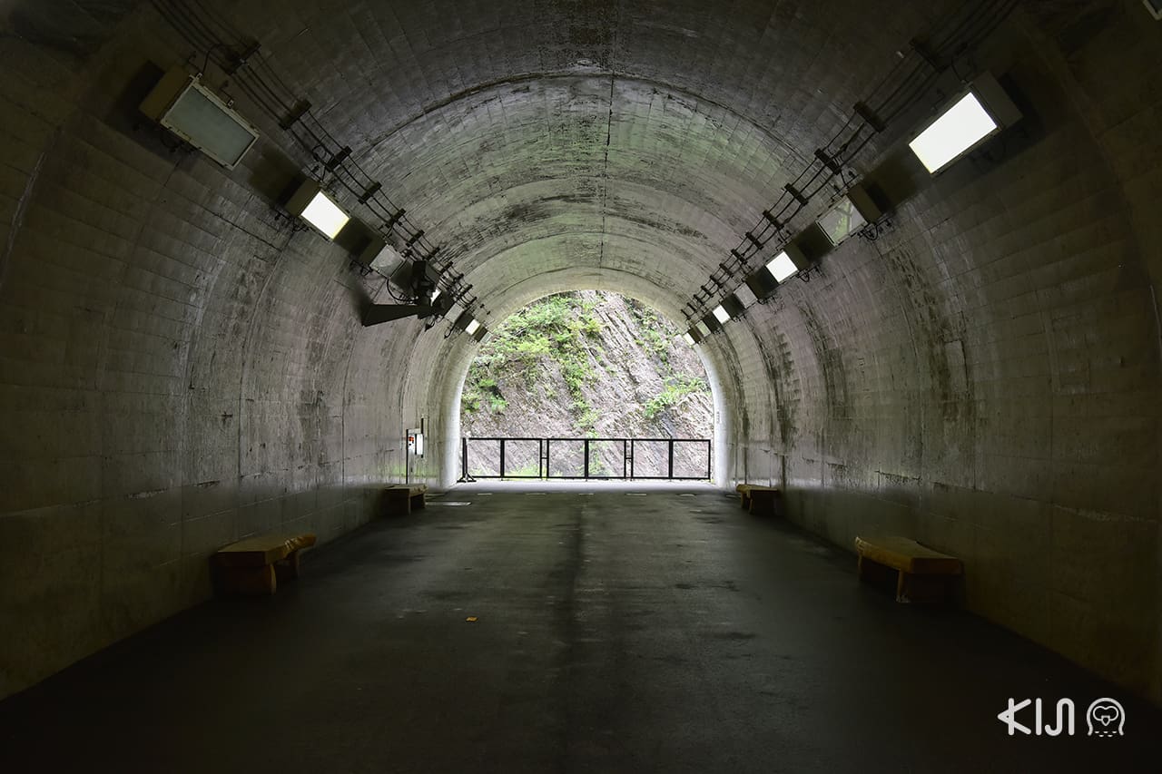 ➣ แพลตฟอร์ม 1 อุโมงค์ปูนเปลือยที่เห็นวิวด้านข้างของหุบเขาและแม่น้ำคิโยสึไหลที่ผ่านด้านล่าง วิวส่วนใหญ่ที่เราเห็นจะเป็นสีเขียวของต้นไม้ เติมความสดชื่นให้กับบรรยากาศหน้าร้อนได้ดี เราประทับใจกับกลุ่มลุงป้าชาวญี่ปุ่นที่มาออกทริปฝึกถ่ายรูปธรรมชาติกัน เป็นกิจกรรมน่ารักที่เห็นแล้วชวนให้ยิ้มตาม