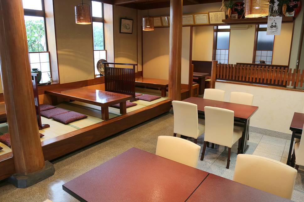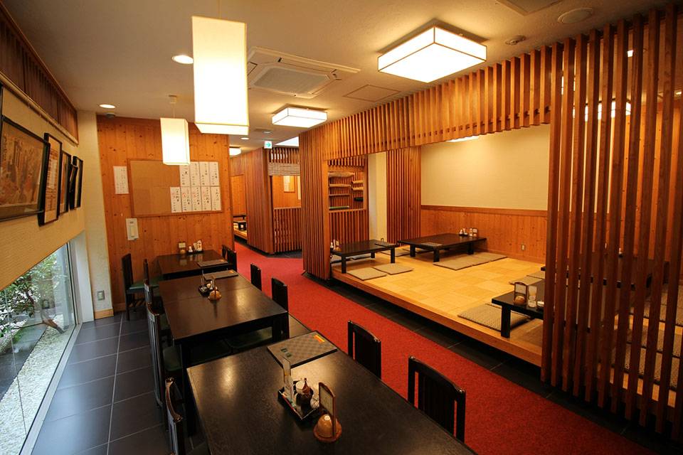 เมื่อเข้ามาภายในร้าน จะเห็นทางเดินที่ถูกปูด้วยพรมสีแดงอย่างเรียบหรู และบริเวณในห้องรับประทานอาหารก็กว้างขวาง มีการแบ่งเป็นสัดส่วนอย่างดี มีหลายมุมให้ได้เลือกนั่ง ทั้งแบบที่เป็นโต๊ะนั่งธรรมดาและโต๊ะที่เป็นเสื่อทาทามินั่งพื้นสไตล์ญี่ปุ่นดั้งเดิมนั่นเอง