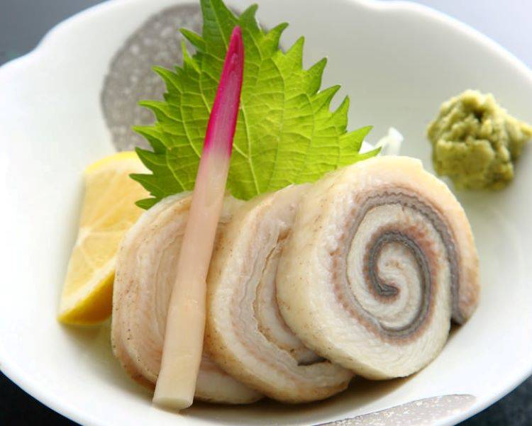 ต่อมาก็เป็นเมนูอานาโกะ ปลาไหลทะเลที่มาในเมนูชื่อว่า ชิโรยากิ (Shiroyaki) ที่ใช้ปลาไหลขาวทะเล นำไปย่างให้มีความกรอบนอกและนุ่มด้านใน โดยไม่เคลือบซอสใดๆ เลย แล้วนำมากินคู่กับวาซาบิและเกลือเพื่อเพิ่มรสชาติ