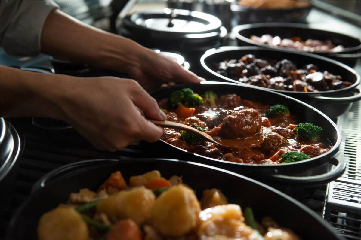 ต่อมาเป็น Vermicular Pot Made Deli โซนอาหารปรุงสุก ที่วางให้หยิบไปรับประทานกันแบบร้อนๆ เลย ไม่ว่าจะเป็น เมนูข้าวปั้น ก็น่ากิน หรือจะเป็นเนื้อตุ๋นมันฝรั่ง ก็น่าลอง อีกทั้ง ยังมีแฮมเบอร์เกอร์ และอีกหลายเมนูให้เลือกกันอีกด้วย