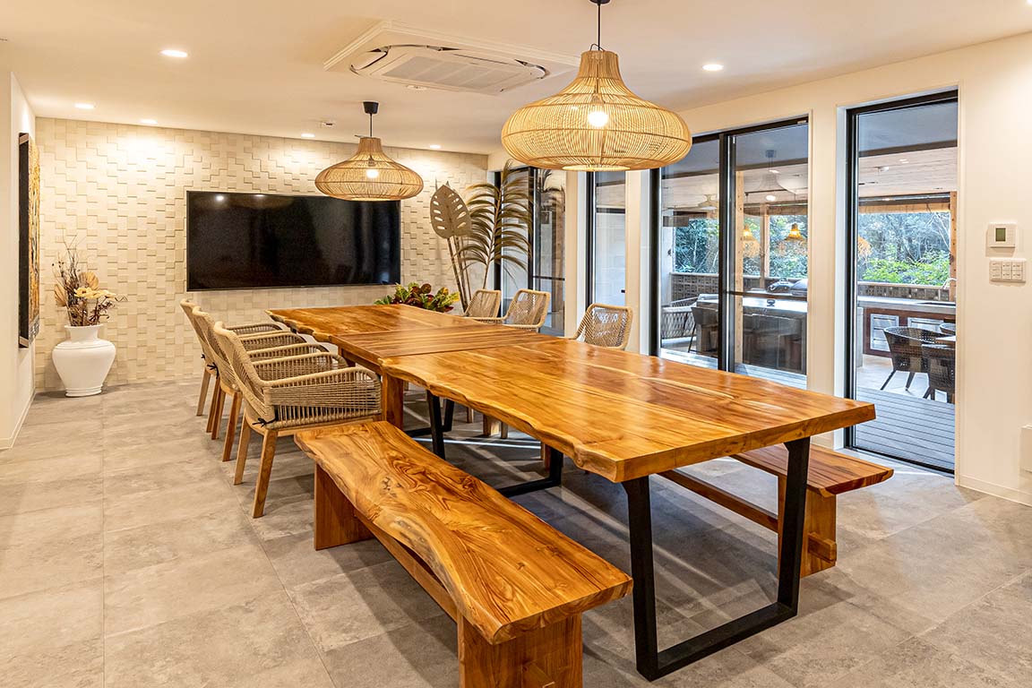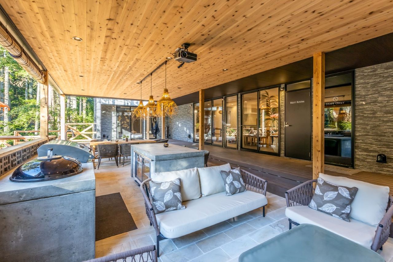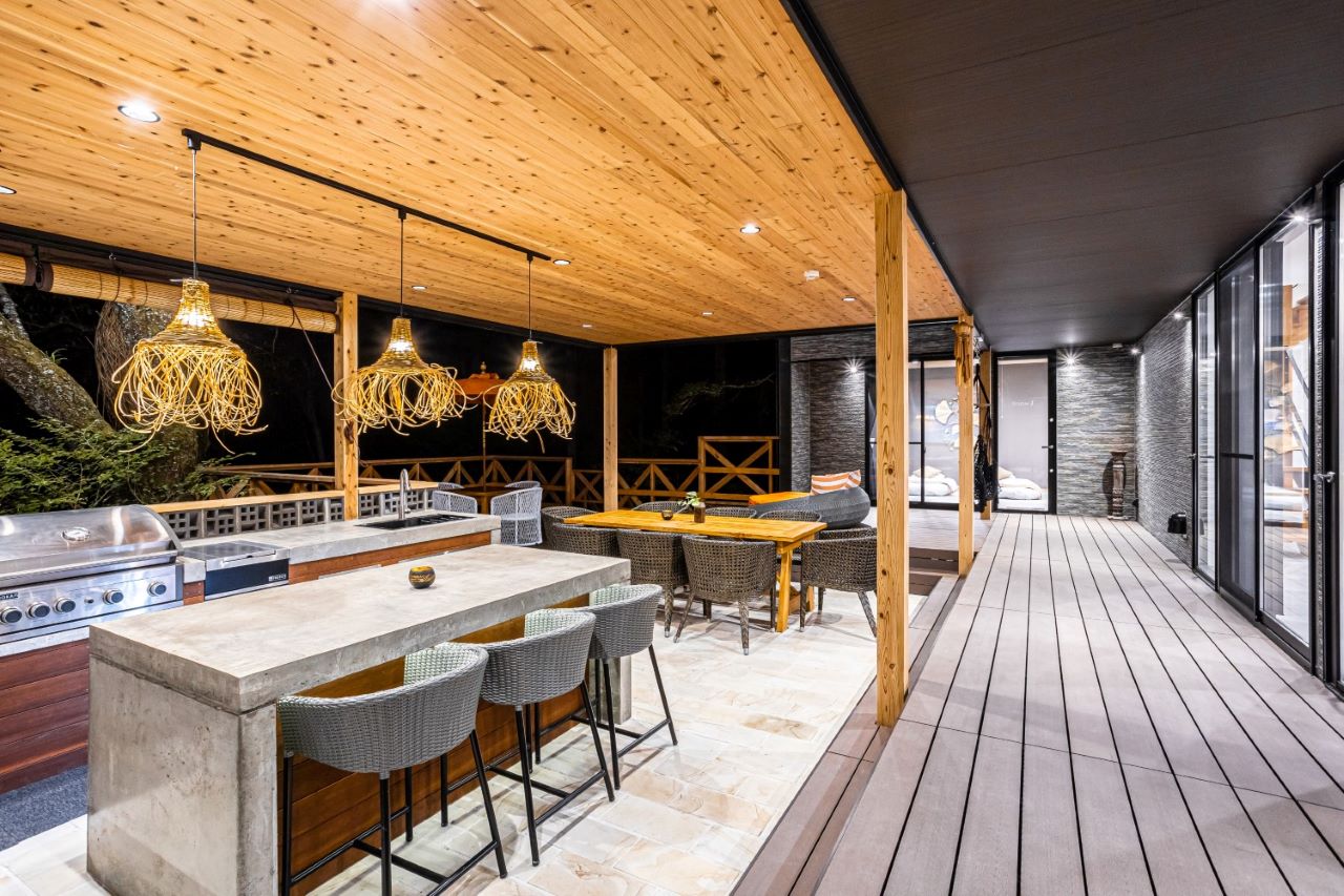 อีกพื้นที่ที่น่าจะถูกใจใครหลายคนกับโซนรับประทานอาหารกลางแจ้ง แขกที่เข้าพักทุกคนจะได้เพลินเพลินไปกับคอร์สบาร์บีคิวสุดหรูโดยเน้นไปที่อาหารทะเลจากเมืองอิสุมิ (Isumi) พร้อมชมภาพยนตร์จากจอโปรเจกเตอร์ขนาดใหญ่