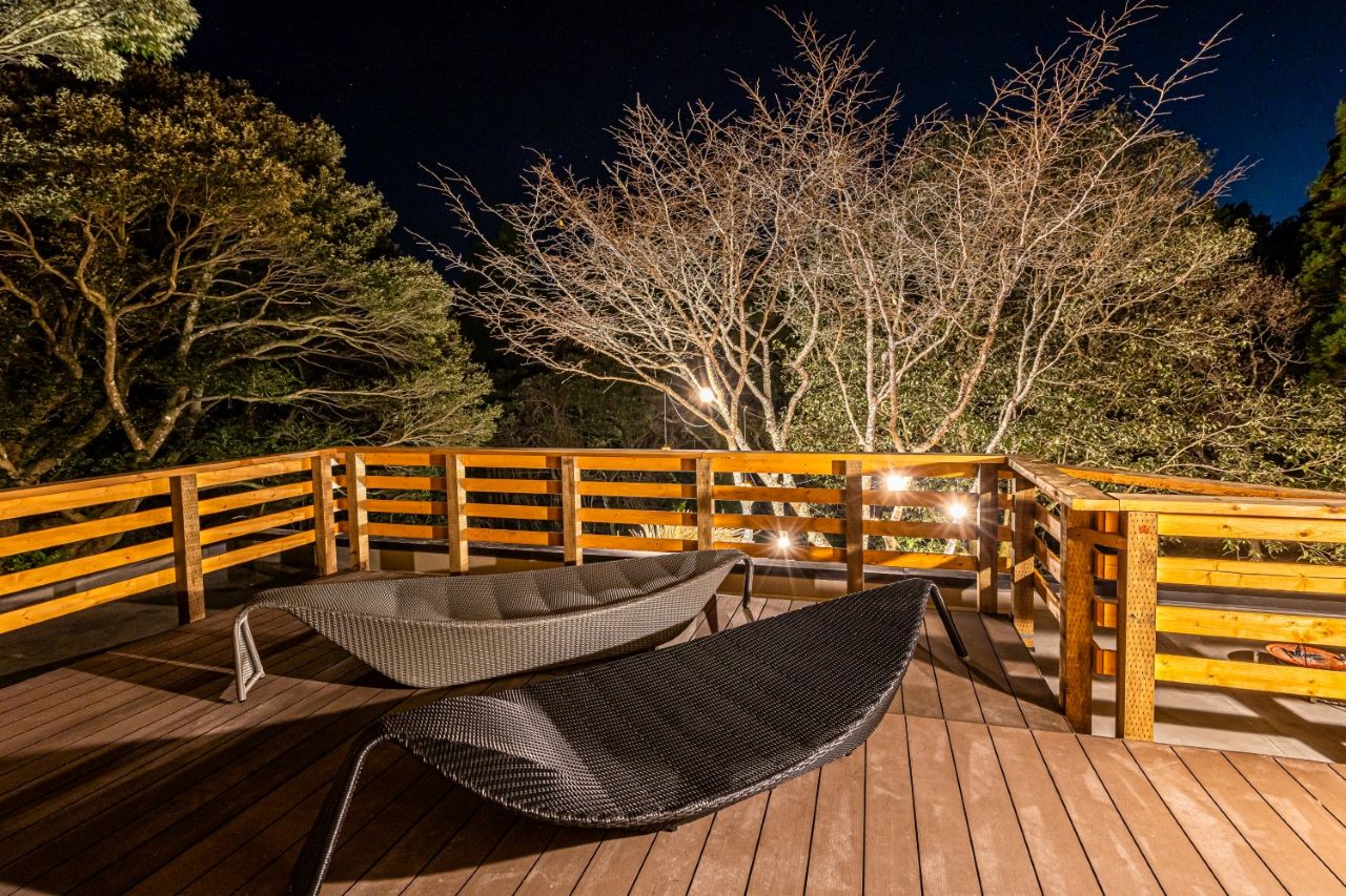 โซนพักผ่อนไม่ได้มีเพียงด้านในเท่านั้น ระเบียงด้านนอกก็มีมุมนั่งผ่อนคลายให้ได้รับลม ชมแมกไม้และวิวธรรมชาติของป่าลึกได้ นอกจากนี้ช่วงค่ำก็ยังสามารถชมดวงดาวที่ลอยเด่นทั่วท้องฟ้ากับกลุ่มเพื่อนหรือครอบครัวแบบชิลล์ๆ ได้