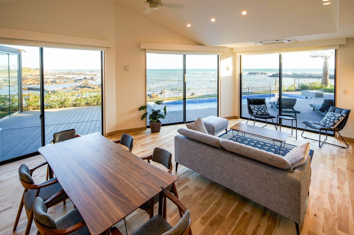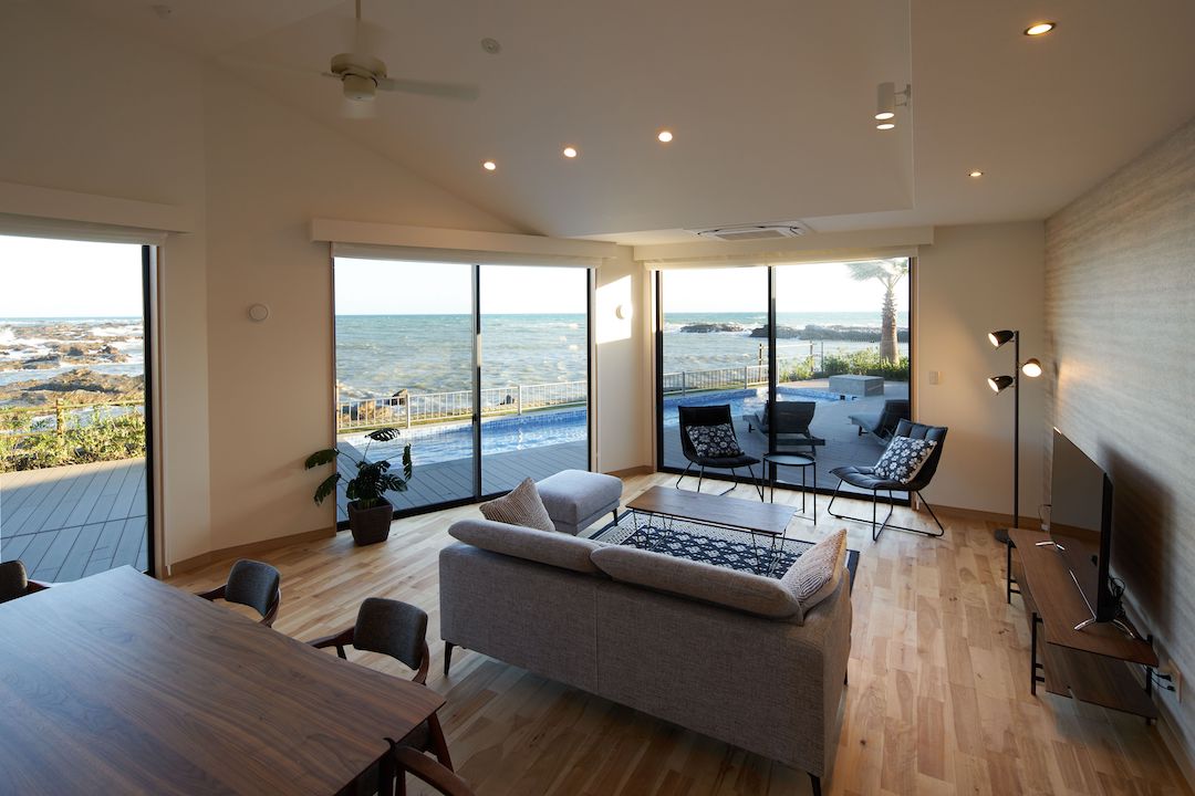 บ้านพักตากอากาศแห่งนี้มีลักษณะเป็นวิลล่าส่วนตัวที่ห่างจากตัวเมืองใหญ่ จึงสามารถพักผ่อนและเพลิดเพลินไปกับวิวมหาสมุทรแปซิฟิกที่จัดว่าเห็นพระอาทิตย์ตกดินที่สวยกินใจมาก จากห้องพักยังสามารถมองเห็นเกาะเล็กเกาะน้อยใกล้ฝั่งอย่าง เกาะซุมิยากิ (Sumiyaki Island) ได้อีกด้วย