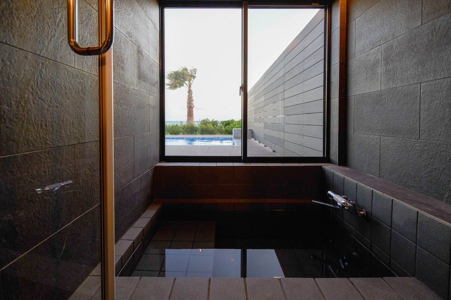 ความดีงามที่หลายคนติดใจก็คือบ่อออนเซ็นแบบส่วนตัว ที่ใช้น้ำพุร้อนธรรมชาติจากเมืองคาโมกาวะ ซึ่งมีแร่ธาตุมากมายที่ดีต่อผิวพรรณ และยังสามารถแช่ตอนไหนก็ได้ตามต้องการตลอด 24 ชั่วโมง ระหว่างที่แช่ออนเซ็นก็ชมวิวทะเลไปด้วยได้ เป็นอะไรที่ดีต่อใจเอามากๆ