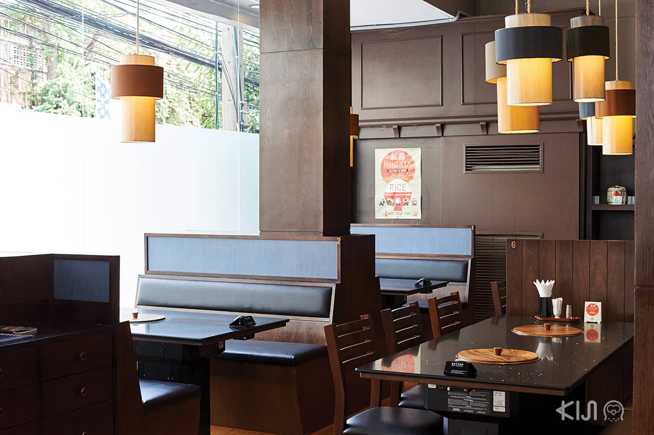 ภายในร้านมีทั้งห้องส่วนตัวขนาดใหญ่และขนาดเล็ก โดดเด่นด้วยลักษณะแบบบ้านเดี่ยวที่มีโทนสีเรียบขรึม ตอบโจทย์ความต้องการของลูกค้าทุกรูปแบบ ที่เด็ดไปกว่านั้นคือมีรถตุ๊กตุ๊กรับส่งให้ด้วย