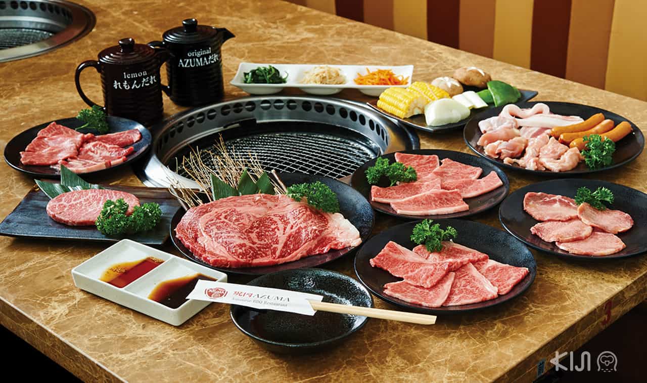 ยากินิกุ “อาซูมา” บุฟเฟ่ต์สุดอลังการในบรรยากาศเรียบหรู เนื้อวากิวของที่นี่โดดเด่นในเรื่องความนุ่มเป็นพิเศษ เมื่อบดเคี้ยวจะซึมซาบถึงรสเนื้อเข้มเต็มคำ พร้อมที่นั่งแบบเคาน์เตอร์ที่สามารถนั่งกินคนเดียวได้ยาวๆ ไปจนถึงห้องส่วนตัวที่นั่งผ่อนคลายสบายๆ ไม่ต้องรีบร้อน